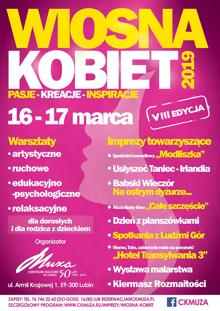 Najbliższy weekend w Centrum Kultury Muza będzie należał do przedstawicielek płci pięknej. Odbędzie się tu kolejna edycja Wiosny Kobiet. Panie będą ćwiczyć, bawić się i uczyć. Wciąż są wolne miejsca na niektóre z zajęć. Można też przyjść, by coś kupić, w holu bowiem staną kiermaszowe stoiska z różnościami.