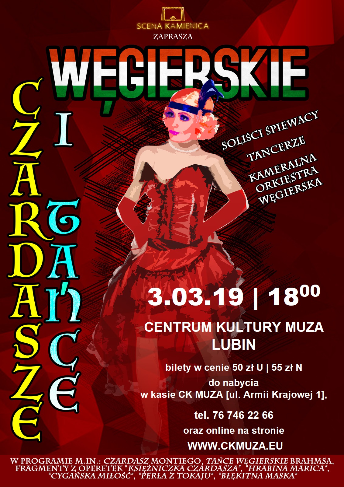 Już 3 marca w Centrum Kultury Muza w Lubinie po raz kolejny Scena Kamienica z Wrocławia przygotuje premierowy spektakl muzyczny. Tym razem będzie można obejrzeć widowisko „Węgierskie czardasze i tańce”.