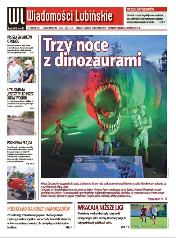W najnowszym numerze „Wiadomości Lubińskich” znajdziecie relację z tegorocznej Nocy Dinozaurów, która cieszyła się sporym zainteresowaniem mieszkańców. Przedstawiamy również sylwetkę wicemistrza Polski w akrobacji lotniczej, który trenuje w naszym mieście.