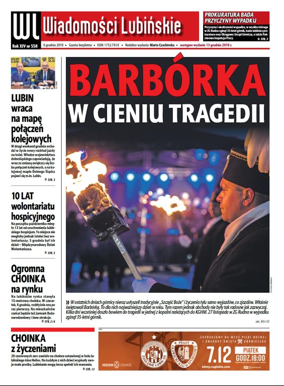 Ponadto w najstarszym lubińskim bezpłatnym tygodniku przeczytacie między innymi o wolontariacie hospicyjnym, połączeniach kolejowych, które wracają do Lubina oraz o świątecznej imprezie.
