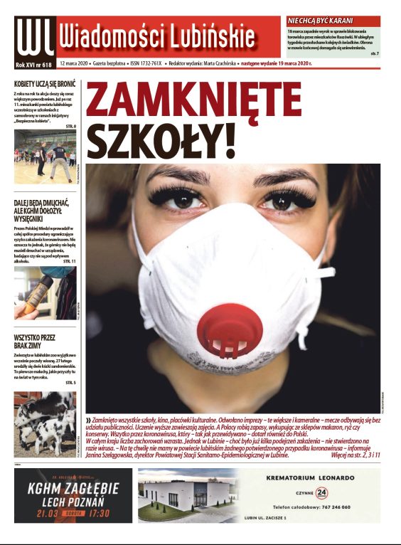 W najnowszym numerze „Wiadomości Lubińskich”, który ukaże się 12 marca, sporo miejsca poświęcamy aktualnemu tematowi numer jeden, czyli epidemii koronawirusa oraz decyzjach polskiego rządu z tym związanych.
