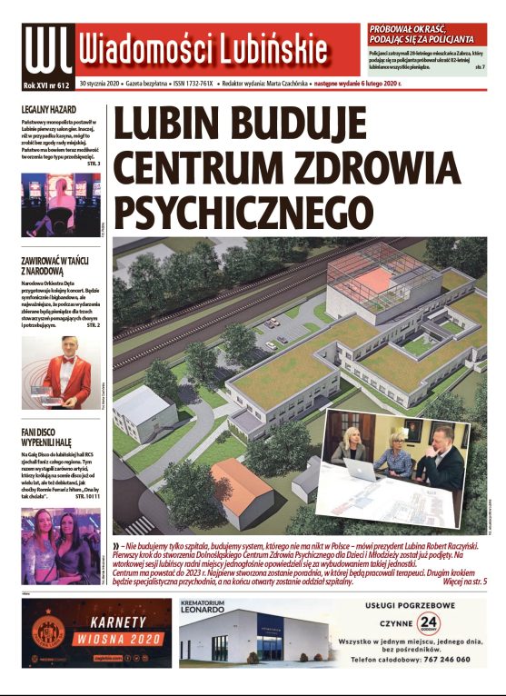W najnowszym numerze „Wiadomości Lubińskich”, który ukaże się już jutro, 30 stycznia, przeczytacie między innymi o planach budowy w naszym mieście Dolnośląskiego Centrum Zdrowia Psychicznego Dzieci i Młodzieży.