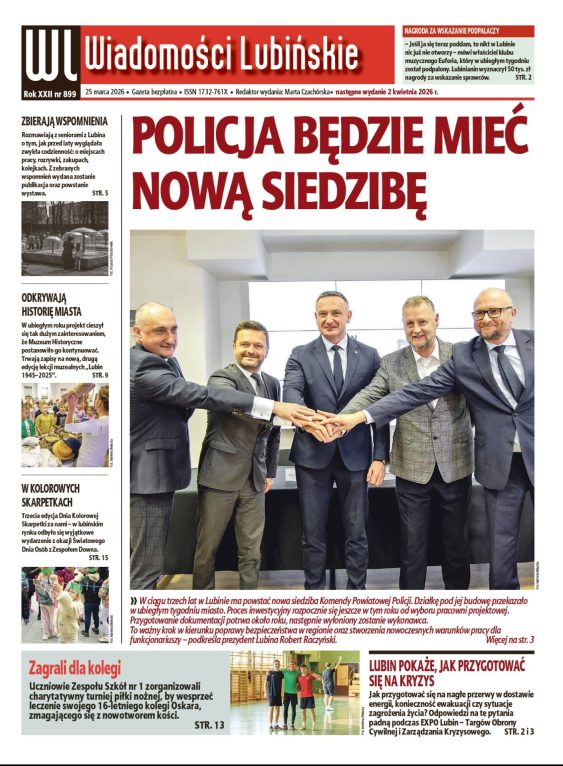 Tym razem wyjątkowo nie w czwartek, a w środę, czyli już jutro, ukaże się nowy numer „Wiadomości Lubińskich”. Przeczytacie w nim m.in. o planach budowy w Lubinie nowej komendy policji.