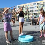 Podstawą „Lata z Muzą” będzie zawsze spektakl teatralny w plenerze, ale i różne atrakcje dla najmłodszych. Tym razem przed obejrzeniem przedstawienia dzieci mogły rysować kredą, puszczać ogromne bańki mydlane, zrobić własną maskę czy pomalować figurki.