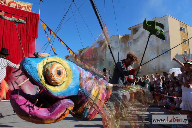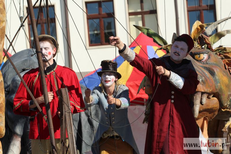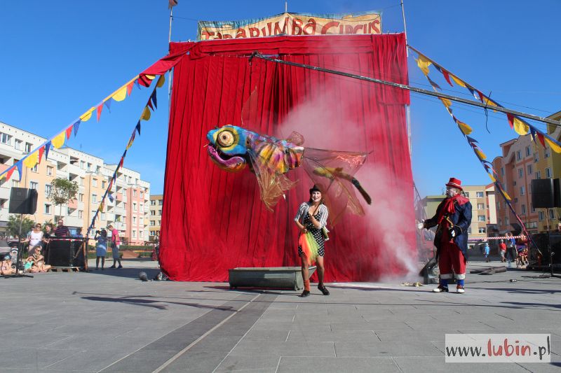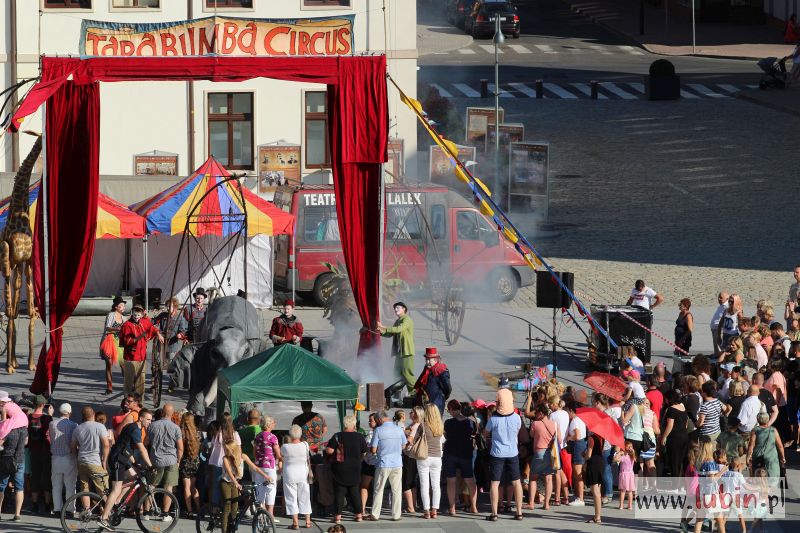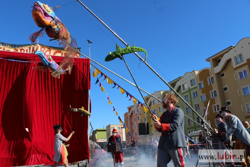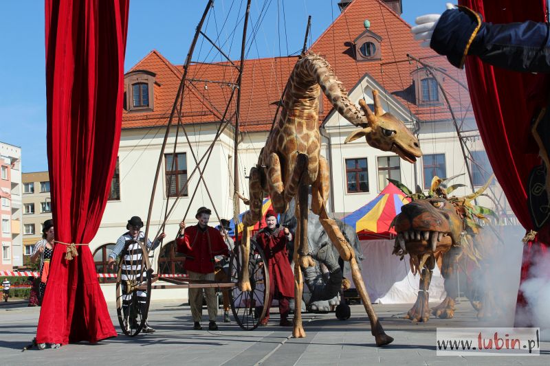 Przerażający lew, zepsuty trzynogi słoń, zakochana żyrafa i latające ryby pojawili się dziś w lubińskim rynku. Ci członkowie niezwykłego cyrku Tarabumba zauroczyli młodszych oraz starszych lubinian i zainaugurowali zupełnie nowe wydarzenie „Lato z Muzą”. – W lecie, raz w miesiącu chcemy zaproponować taką rodzinną imprezę – mówi Małgorzata Życzkowska-Czesak, dyrektor Centrum Kultury Muza.