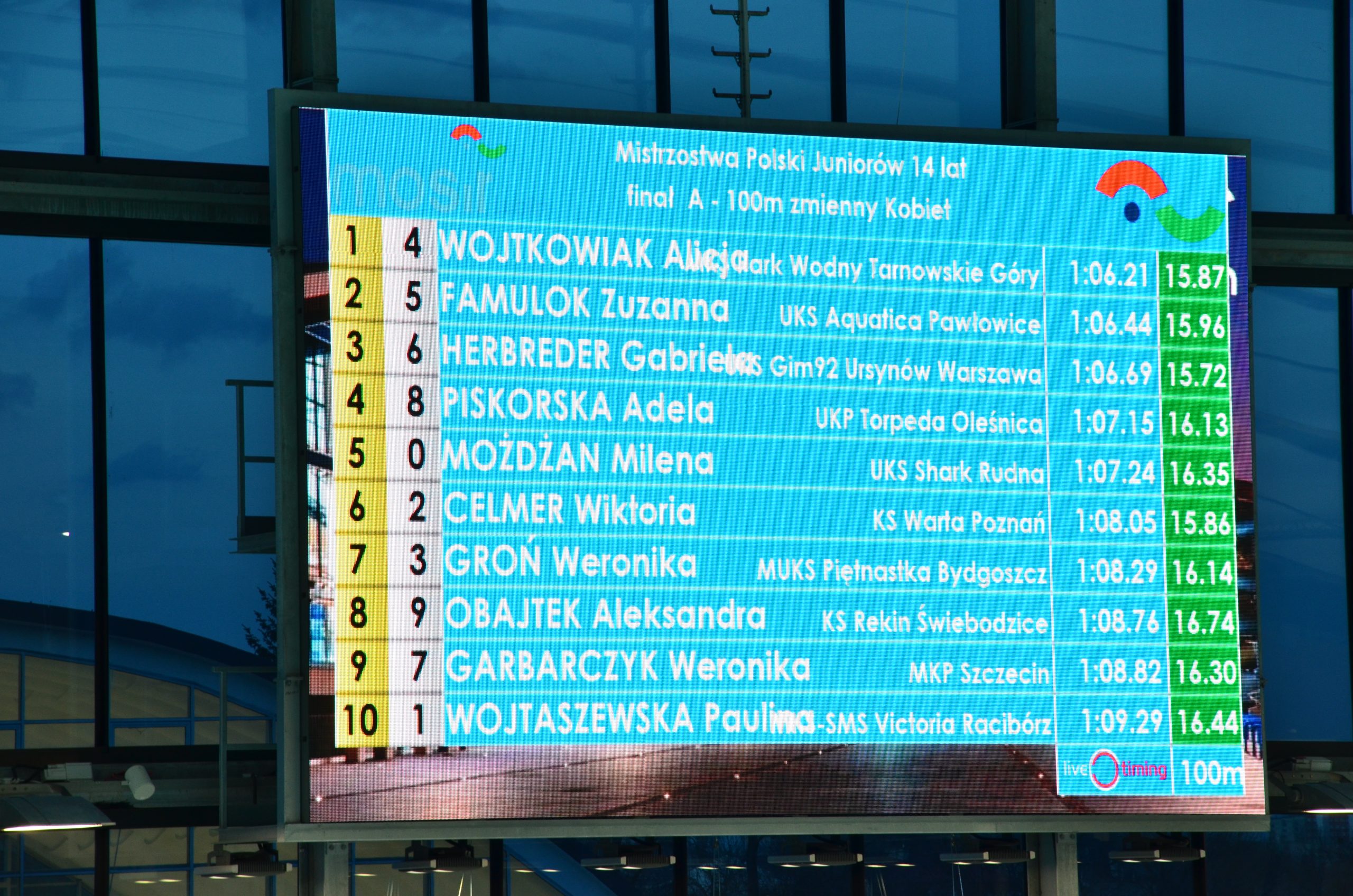 – To był pierwszy występ Mileny na Mistrzostwach Polski w naszych barwach klubowych. Przygotowując ją byłem pewny, iż zrobi dużo życiówek, ale to z jakiej strony się pokazała przeszło moje najśmielsze oczekiwania. Milena osiągnęła bardzo dobre wyniki zajmując tym samym piąte miejsce na dystansie stu metrów stylem zmiennym (1:07.24), dziewiąte miejsce na dystansie stu metrów stylem motylkowym (1:06.49), dziesiąte miejsce na dystansie czterystu metrów stylem zmiennym (5:21.47). Mam nadzieję, że wyniki, które osiągnęli zawodnicy w pierwszych mistrzostwach zmotywują, Milenę i Kacpra do jeszcze lepszej pracy. Dlatego jestem pewien, że Letnie Mistrzostwa Polski w Olsztynie będą należały do nich. Milenie i Kacprowi gratuluję nowych rekordów życiowych – podsumowuje Andrzej Pakuła, szkoleniowiec pływaków.
