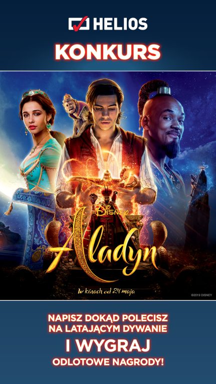 Zasady konkursu, regulamin oraz bilety na premierowe seanse filmu „Aladyn” dostępne są pod adresem: www.helios.pl/aladyn.