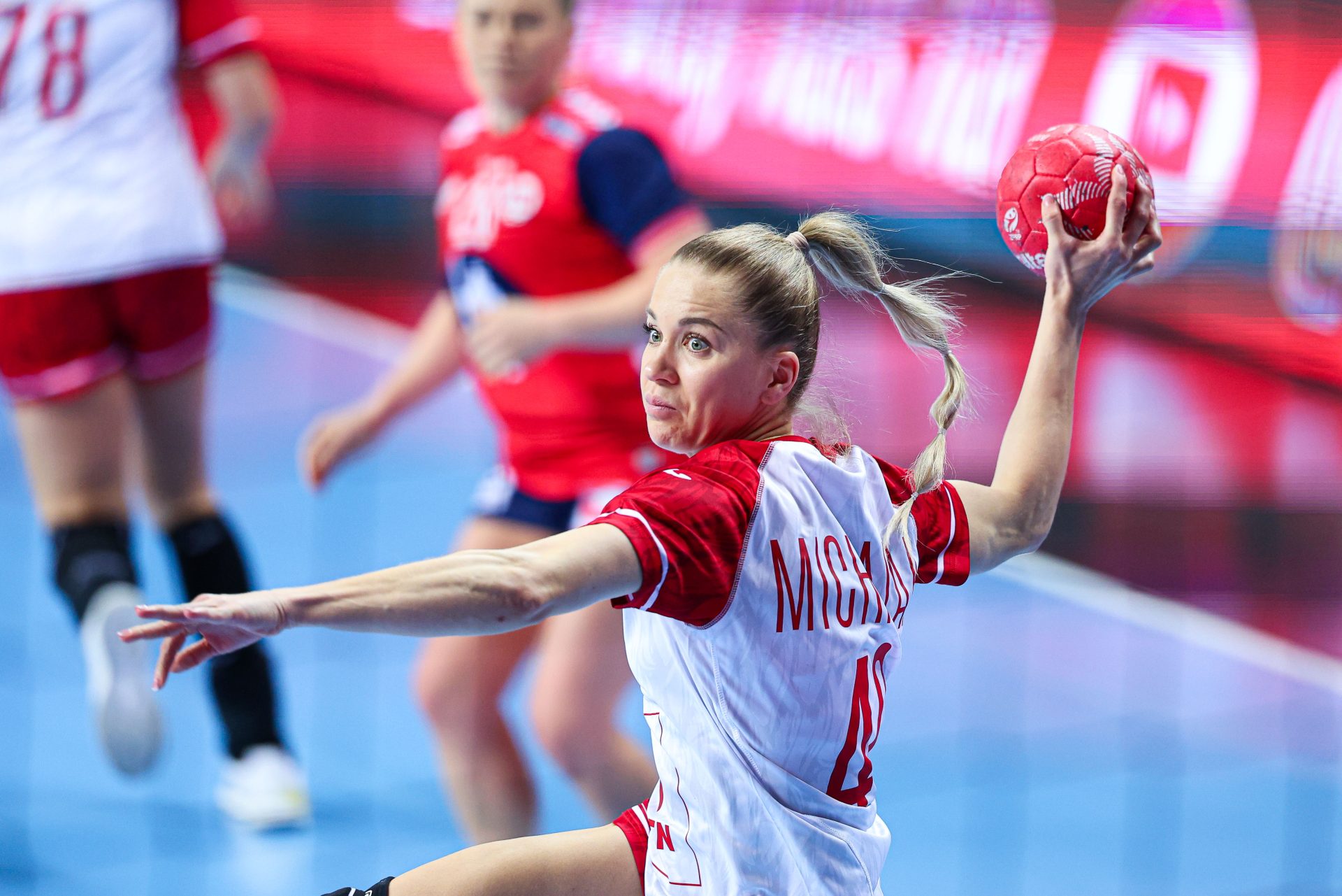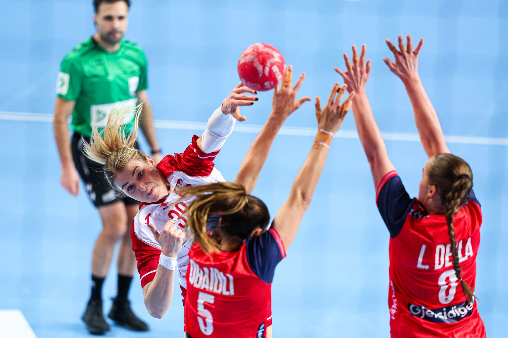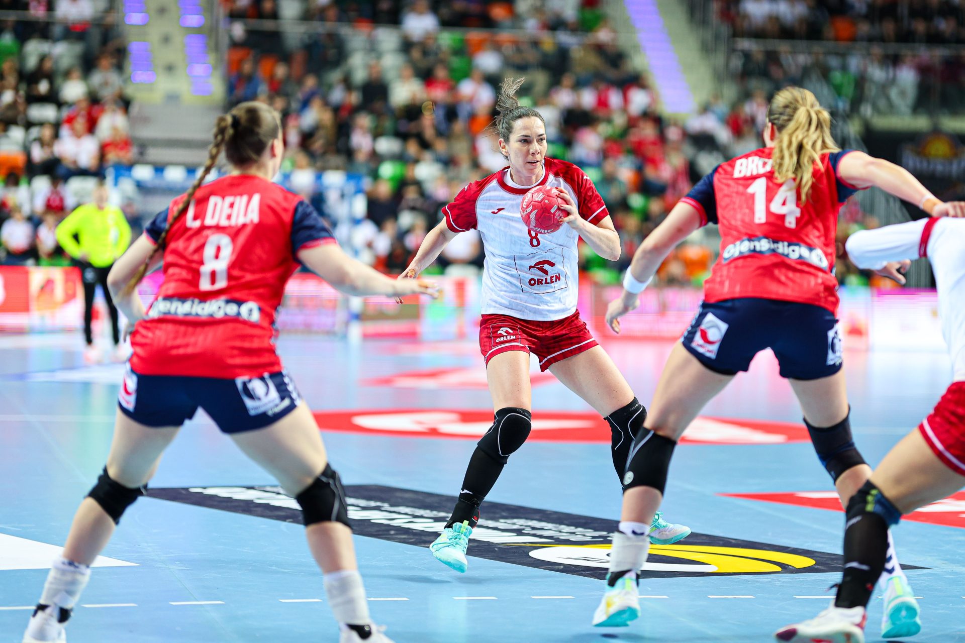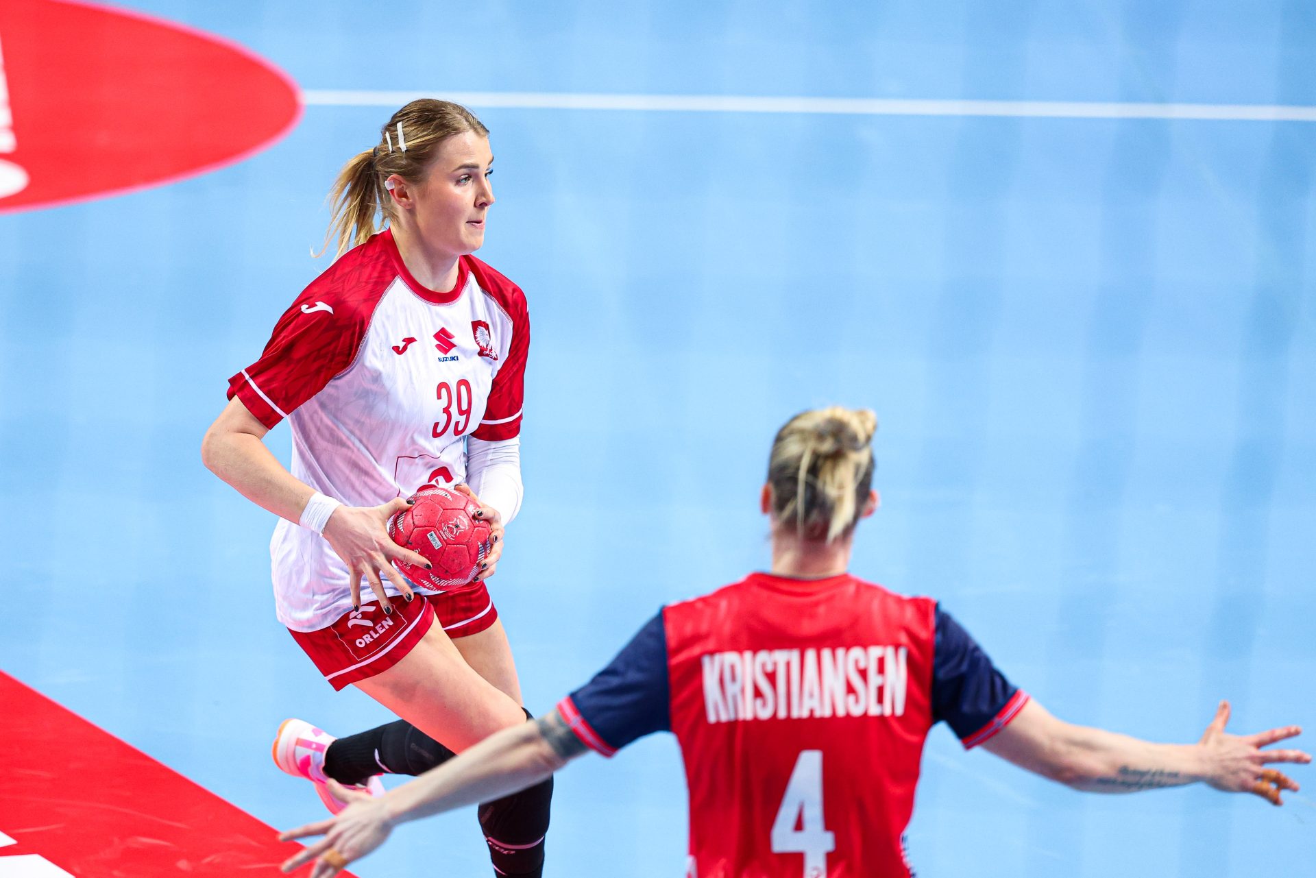 W wyjściowej siódemce znalazły się jednak bardziej doświadczone zawodniczki: Barbara Zima, Daria Michalak, Aleksandra Rosiak, Paulina Uścinowicz, Monika Kobylińska, Magda Balsam oraz Aleksandra Olek. Pierwszą bramkę w meczu zdobyła Henny Reistad.