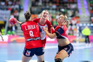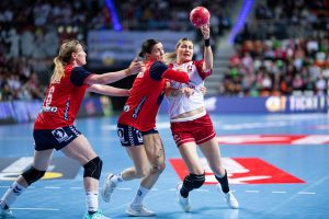 Chwilę później wyrównała Magda Balsam, rehabilitując się za niewykorzystany wcześniej rzut karny. Początek spotkania był wyrównany i obie drużyny odpowiadały sobie trafieniami (3:3). Po kilku minutach Norweżki po raz pierwszy odskoczyły na dwie bramki (5:3). W ofensywie znakomicie spisywała się Henny Reistad, a z biegiem czasu przewaga przyjezdnych zaczęła rosnąć. Po 15 minutach było 4:8, a pięć minut później już 6:13.
