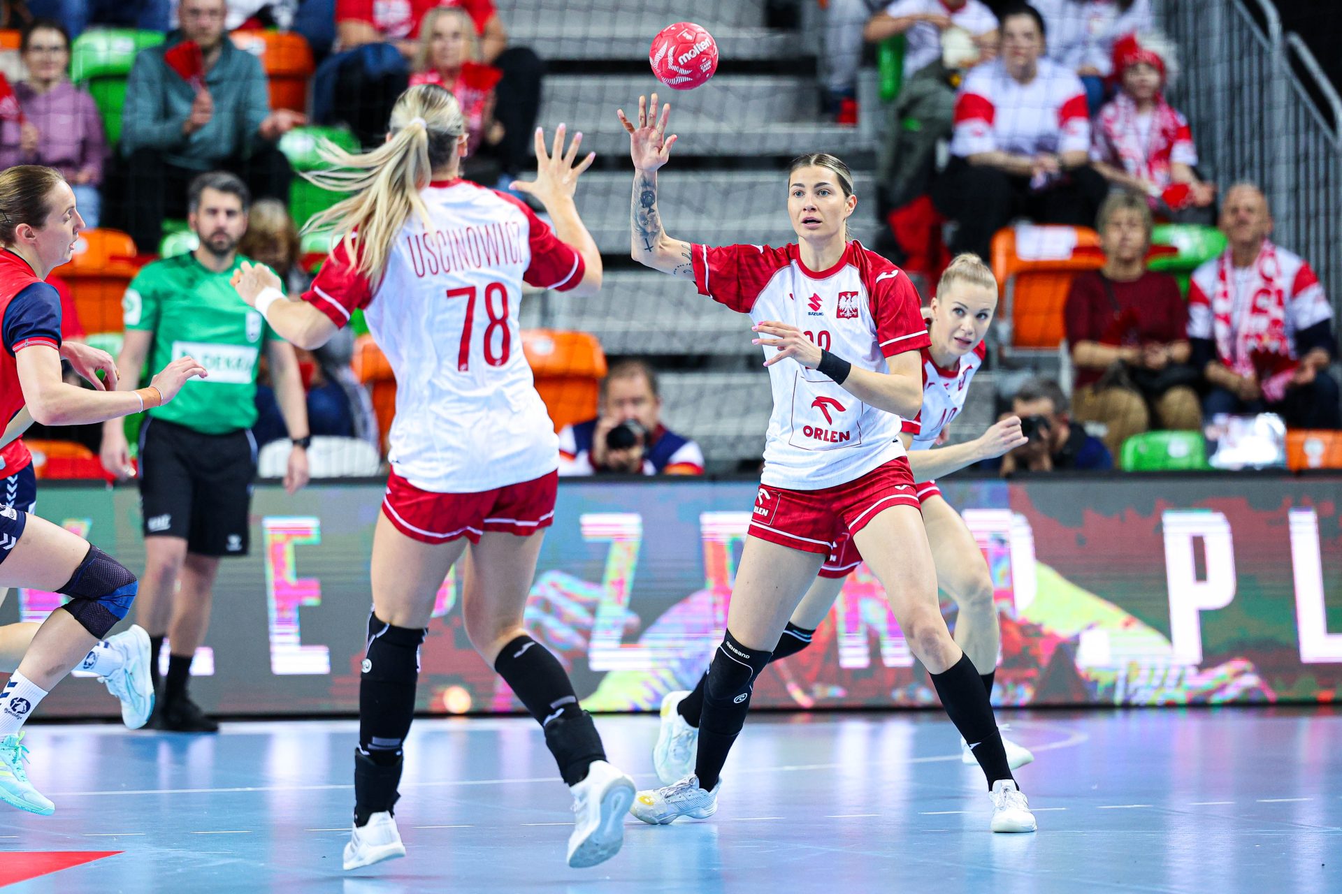 Po zmianie stron gospodynie wyszły na boisko z dużą determinacją, chcąc zmniejszyć stratę. Przy głośnym dopingu kibiców w Lubinie Polki zdobyły trzy gole z rzędu i zbliżyły się na cztery bramki (20:16). Trafiały m.in. Patrycja Noga, Aleksandra Rosiak i Magda Balsam.