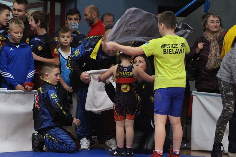 – Jest duże zadowolenie zwłaszcza, że to mój pierwszy rok w młodzikach. Duży wpływ na mój sukces też miał mój wujek, który wciągnął mnie w zapasy. Na nasze zawody nie mogłam się doczekać, bo bardzo lubię nasze zawody, a stres? Nie ma go zbyt wiele – podkreśla Magdalena Siedy, wychowanka Wiatru Wołów.