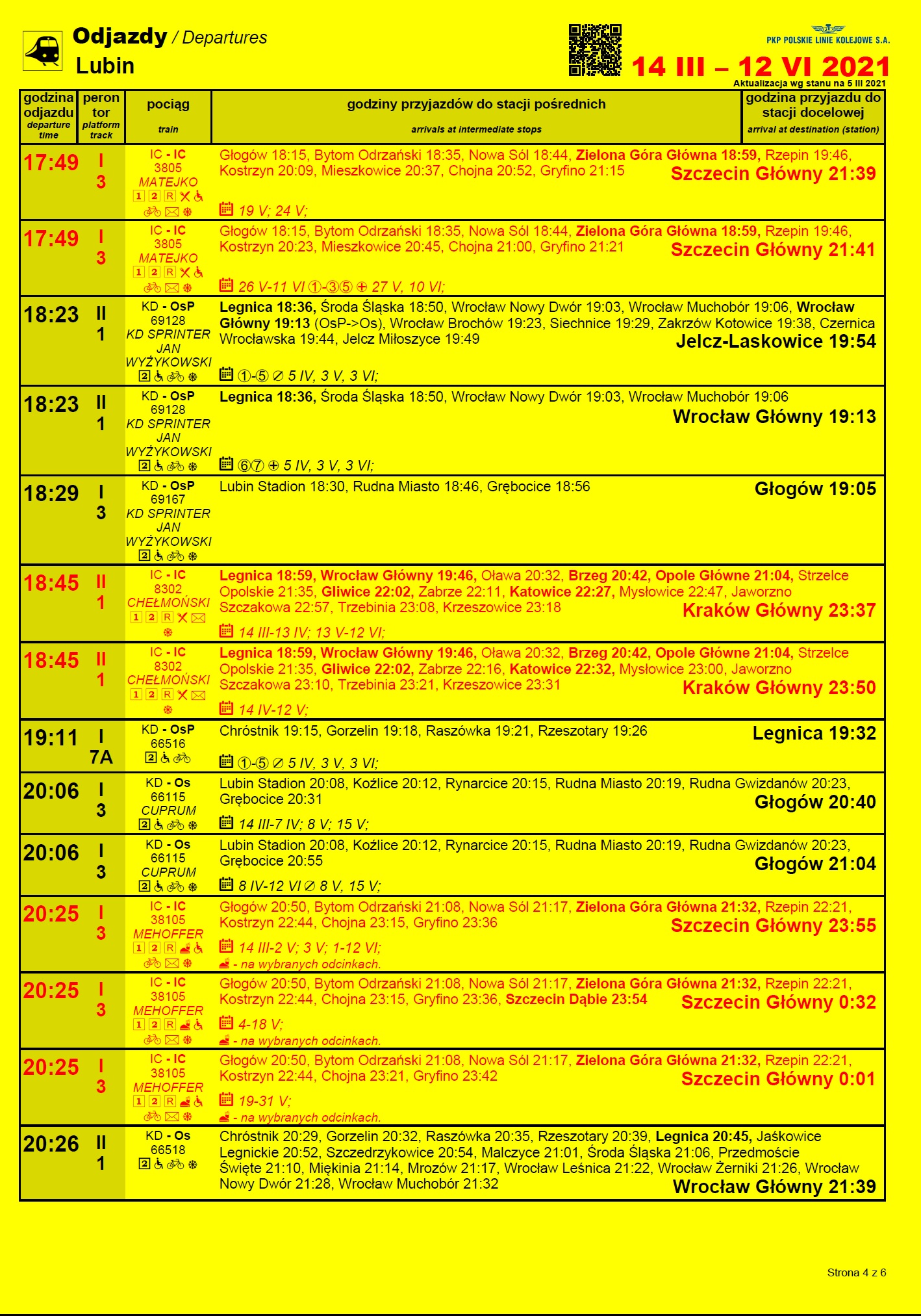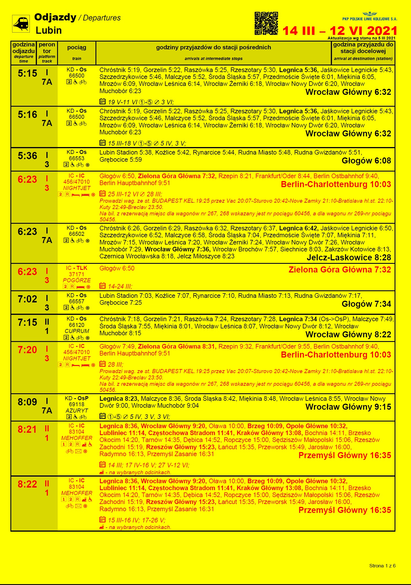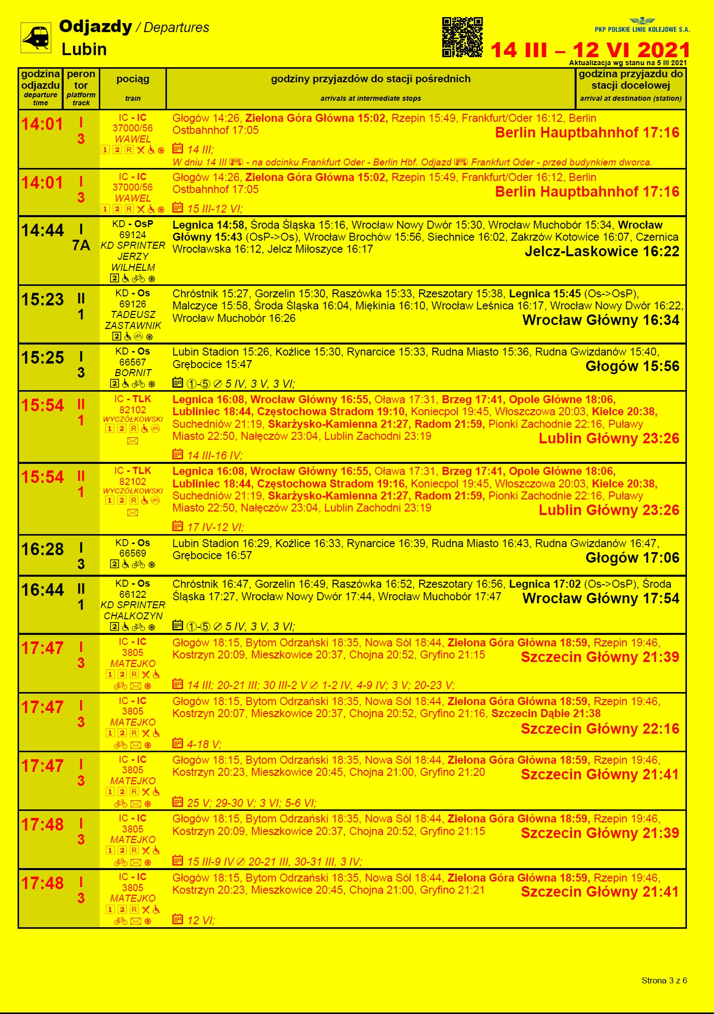 Szczegółowe plakatowe rozkłady jazdy ze stacji Lubin publikujemy poniżej.