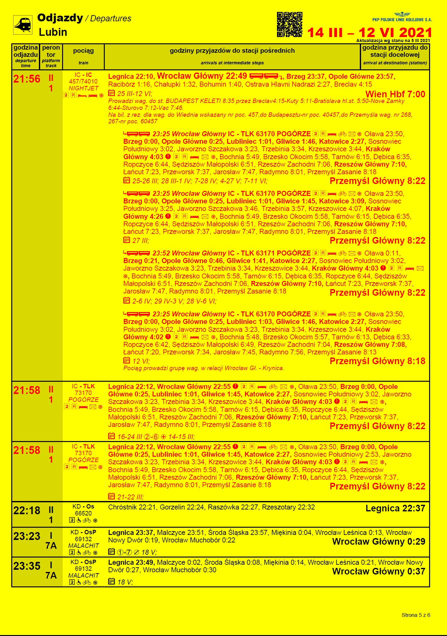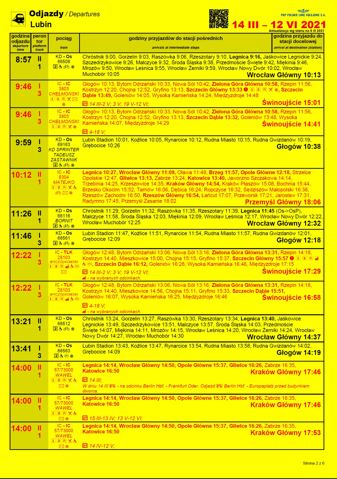 Rozkład jazdy – relacyjny odjazdy (ważny od 14 marca)