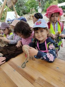 Przedszkolaki przemierzyły całą osadę, poznając jak toczyło się życie dawnych Słowian, wykonały amulety oraz przeszły przez tor przeszkód.