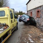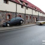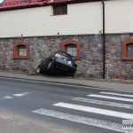 Kierowcy fiata stilo, jadącemu w kierunku Szklar Górnych, na szczęście nic się nie stało. Jak mówi, nie jechał szybko, ale droga była śliska. Stracił panowanie nad autem i uderzył w stojący przy drodze, na wysokości kościoła, budynek. Samochód tylnym kołem zawisł w powietrzu. Potrzebna była pomoc drogowa. Na miejsce wezwano też karetkę pogotowia, ale okazało się, że kierowca nie ucierpiał poważnie.