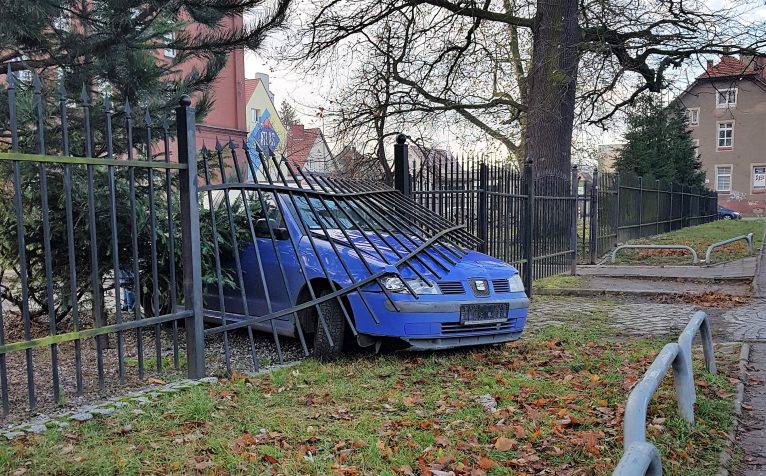 Sytuacja miała miejsce dzisiaj rano. Przechodnie zatrzymywali się przy szkole przy ulicy Kościuszki, widząc niebieskiego seata, który wbił się w ogrodzenie. – To jeden z uczniów, widzieliśmy jak szarżował. Młodzież nie myśli dziś o konsekwencjach, mógł zrobić krzywdę któremuś z kolegów albo z nauczycieli – komentują pracownicy jednego z pobliskich sklepów.