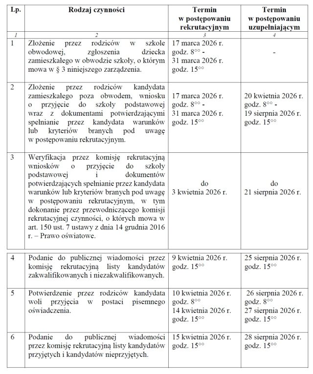 Terminy rekrutacji do klas pierwszych szkół podstawowych: