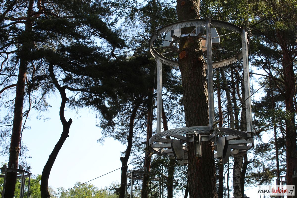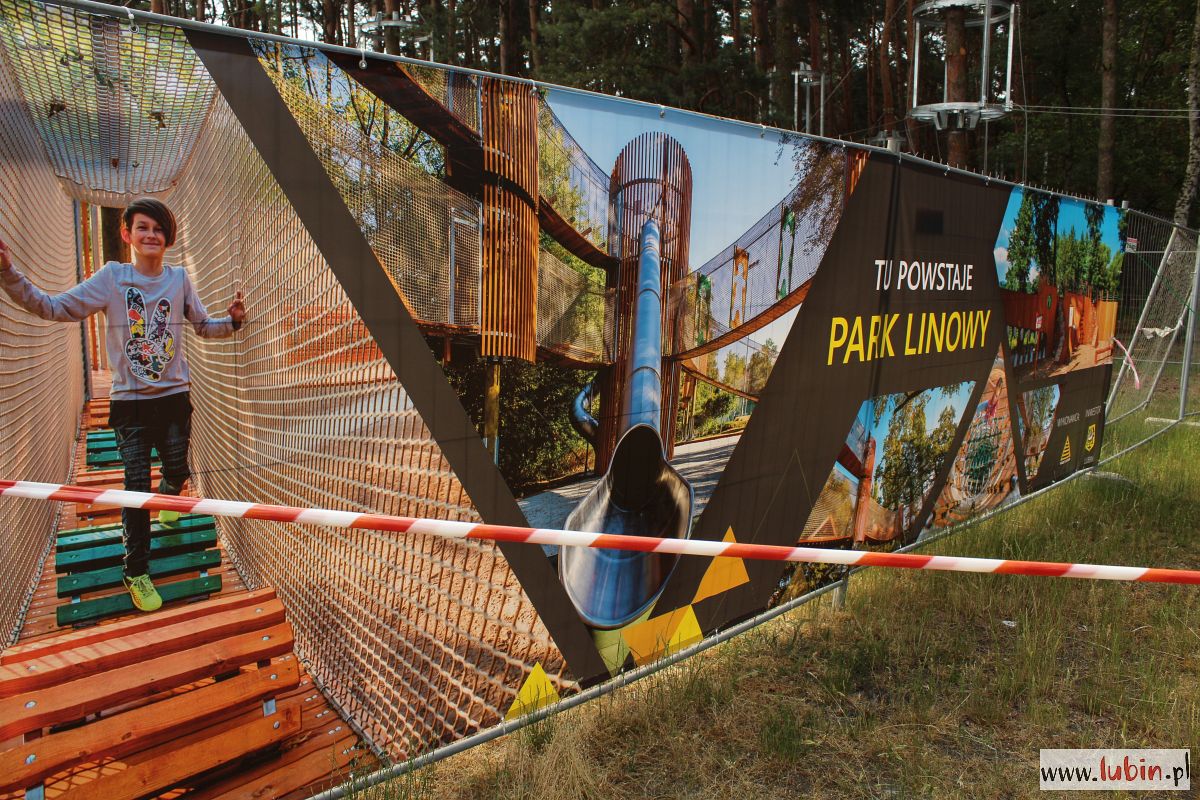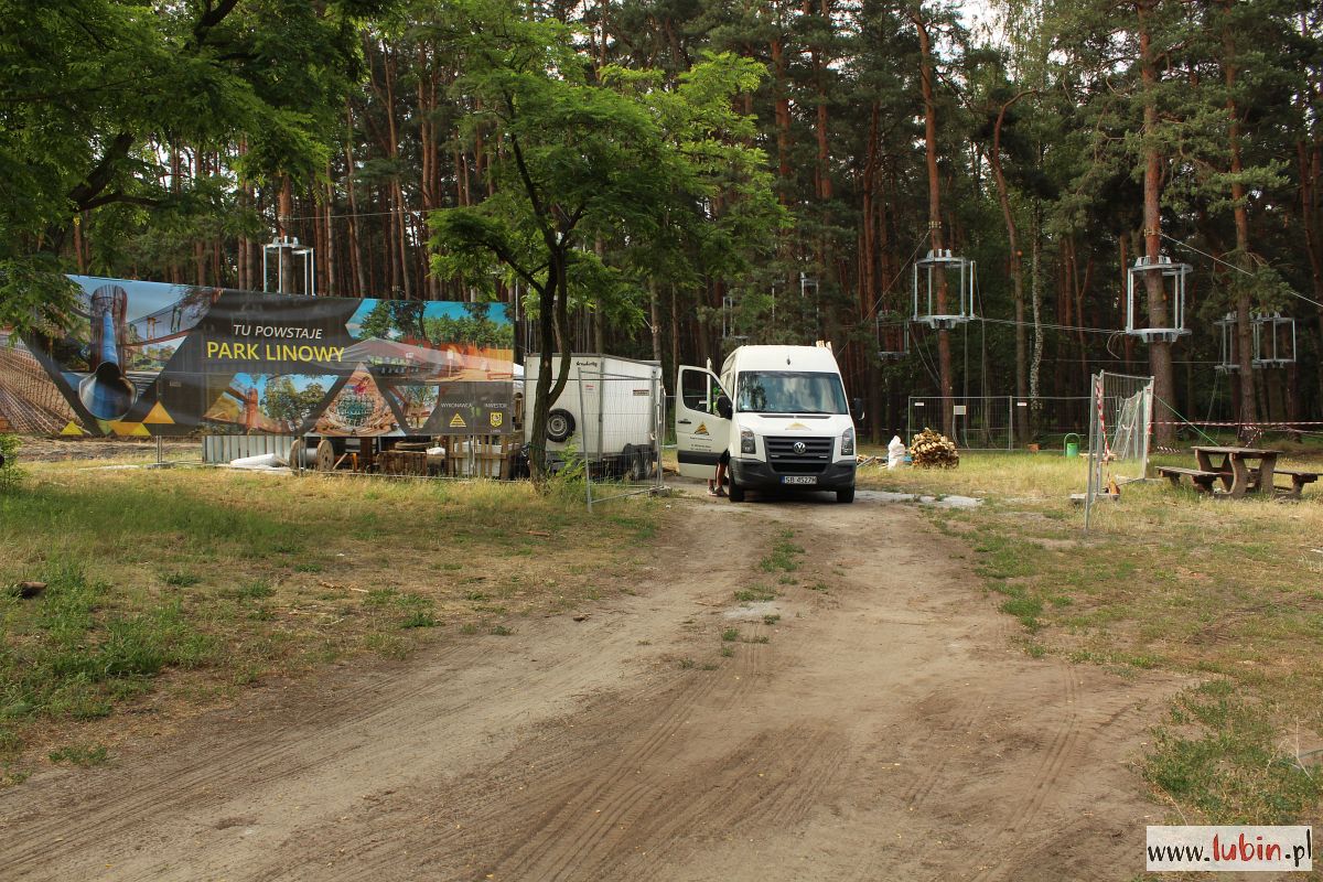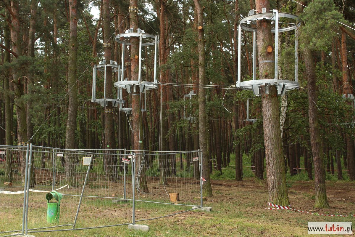 Na drzewach w parku Leśnym właśnie montowane są metalowe konstrukcje, które będą stanowiły domki-bazy, dla tych którzy będą w przyszłości bawili się w tym parku linowym. Instalowane są na dwóch wysokościach: 4 i 6 metrów. Lubiński park linowy będzie się bowiem składał z dwóch tras na różnych wysokościach. Każda trasa będzie miała po 130 metrów długości i będzie posiadała przeszkody o różnym stopniu trudności. Na końcach każdej z tras staną wieże ze zjeżdżalniami. Całość będzie wyposażona w siatki bezpieczeństwa.