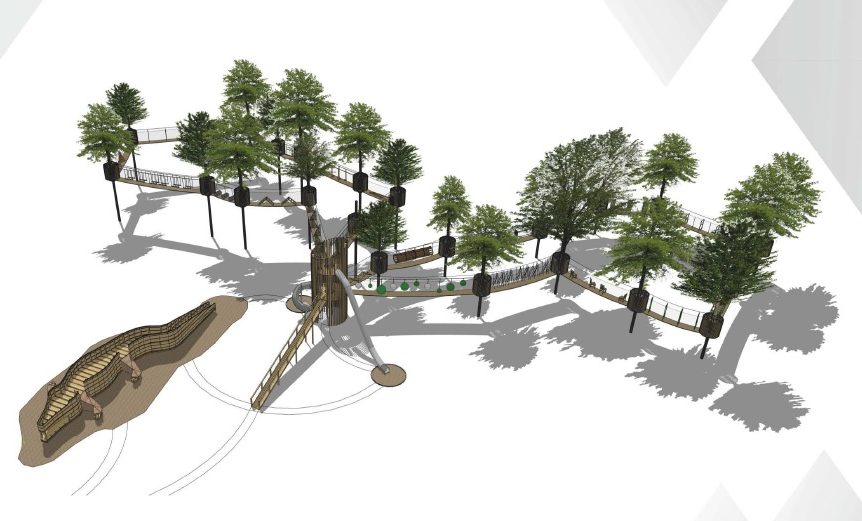 Oprócz parku linowego powstanie również plac zabaw dla mniejszych dzieci w kształcie wielkiego krokodyla, do wnętrza którego będzie można wejść.