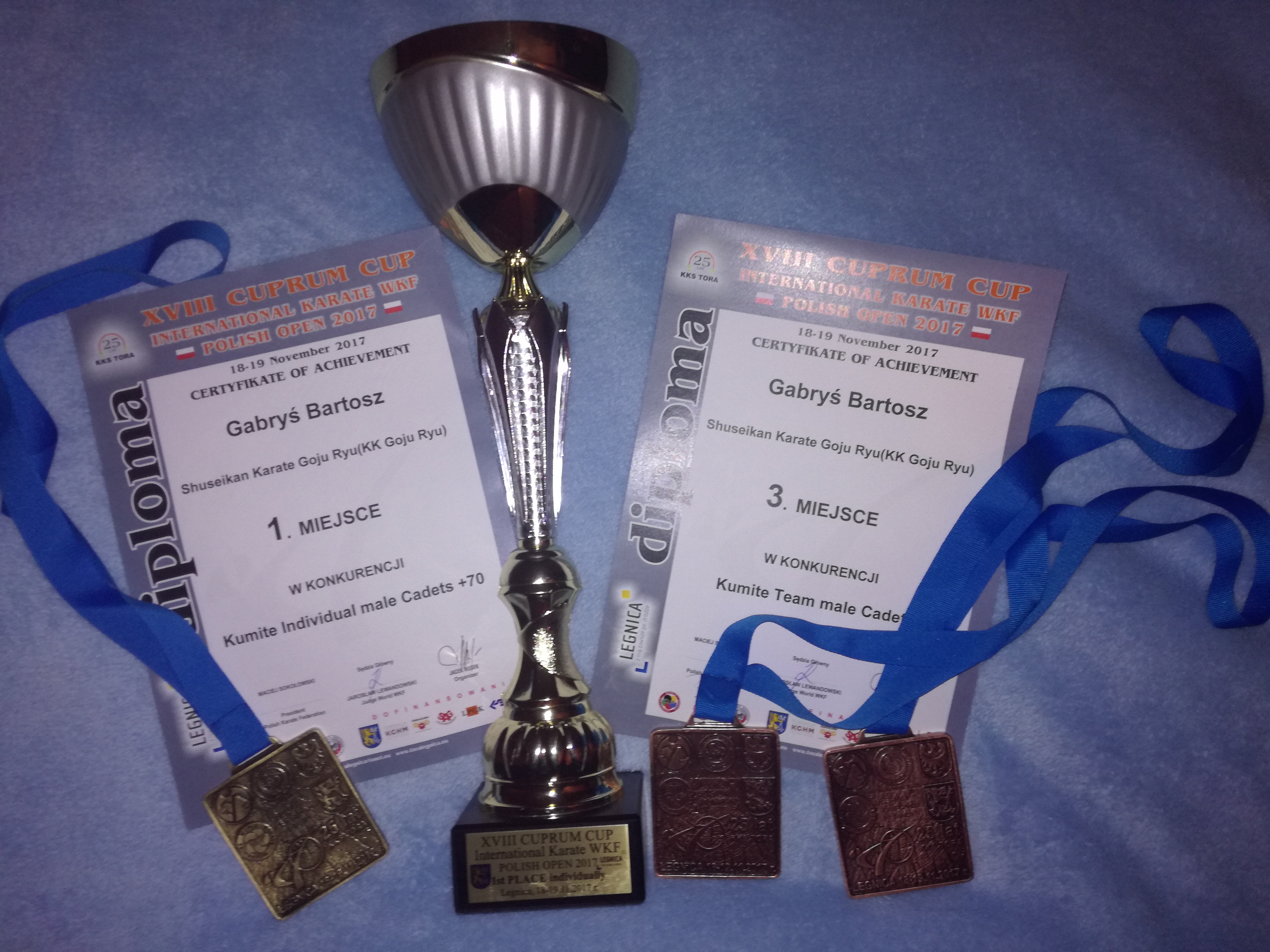 Bartosz Gabryś wywalczył pierwsze miejsce w kumite Kadetów. – Bartosz razem z kolegami ze Ścinawy reprezentując barwy Shuseikan Poland, zdobył także trzecie miejsce w kumite drużynowym kadetów oraz trzecie miejsce w kumite drużynowym juniorów – dodaje Zbigniew Dziubek, Sensei karate goju ryu z Lubina.