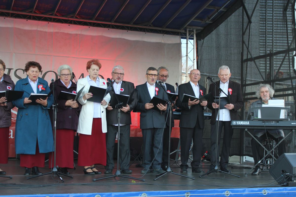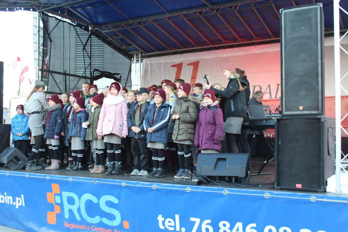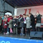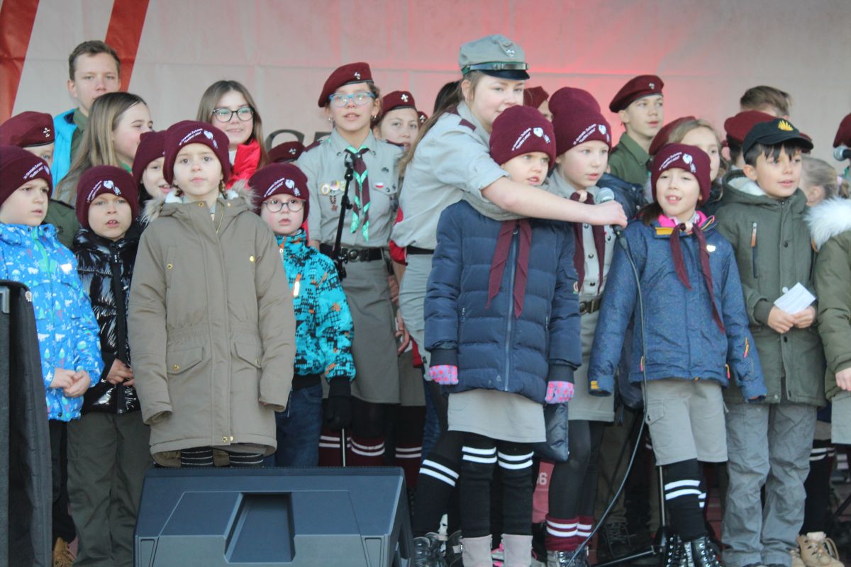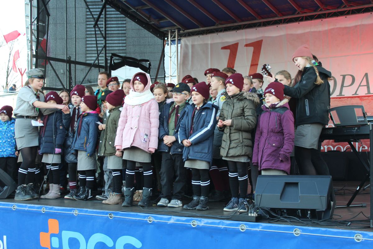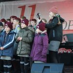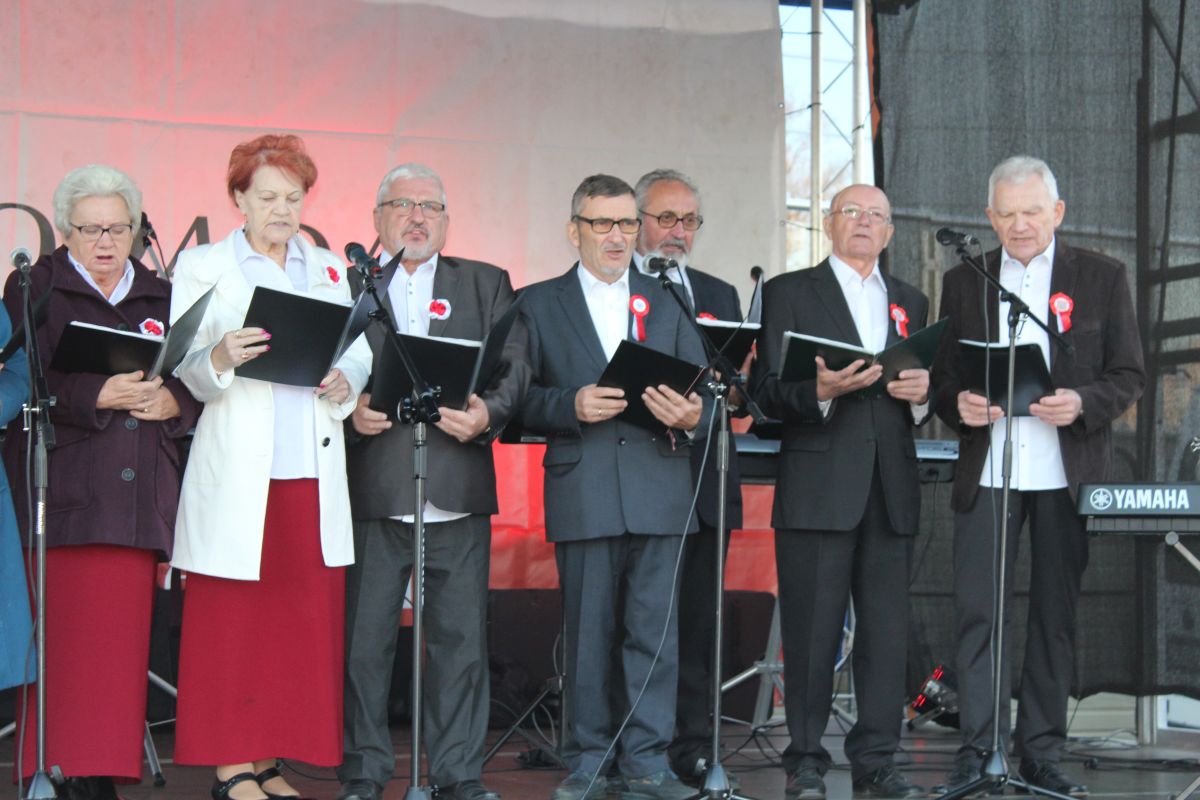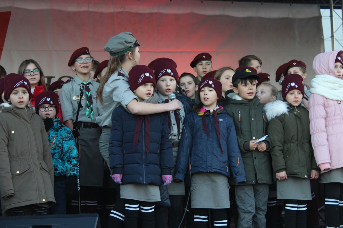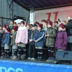 Tuż przed schodami prowadzącymi do hali RCS rozłożono niewielką scenę, na której swoje zdolności artystyczne, a zwłaszcza wokalne, prezentowały różne grupy. Publiczność oklaskiwała m.in. lubińskich harcerzy czy podopiecznych Domu Dziennego Pobytu „Senior” w Lubinie. Naturalnie w repertuarze dominowały utwory o charakterze patriotycznym, wszak to właśnie dziś obchodzimy 101. rocznicę odzyskania przez Polskę niepodległości. Muzycznie był to jednak dopiero przedsmak tego, co od godz. 16.30 działo się już w samej hali, a o czym przeczytacie w naszym następnym artykule.