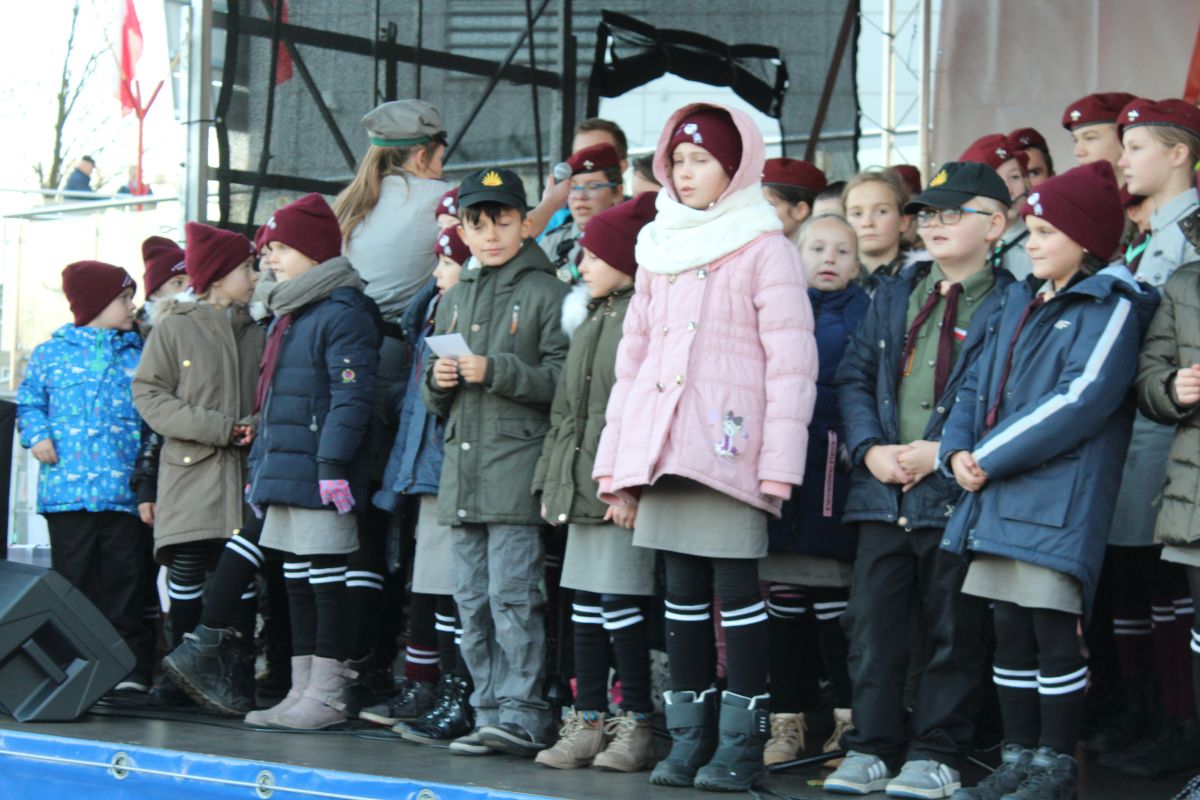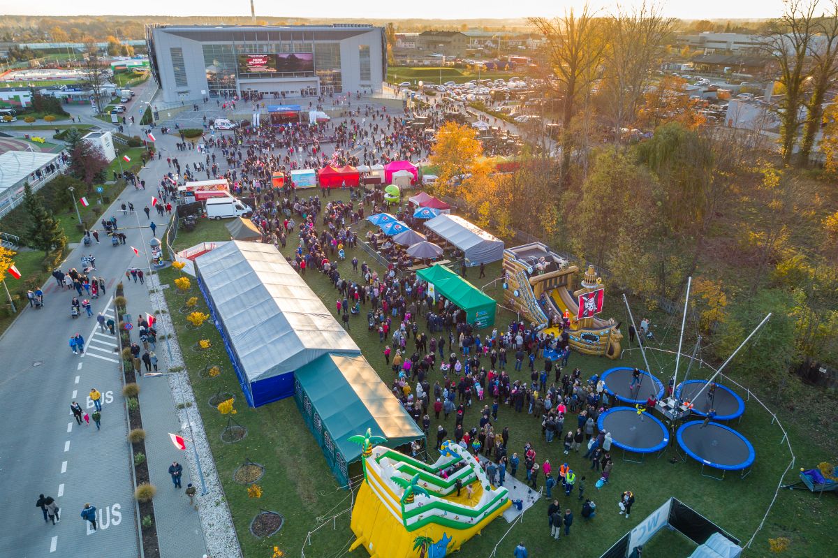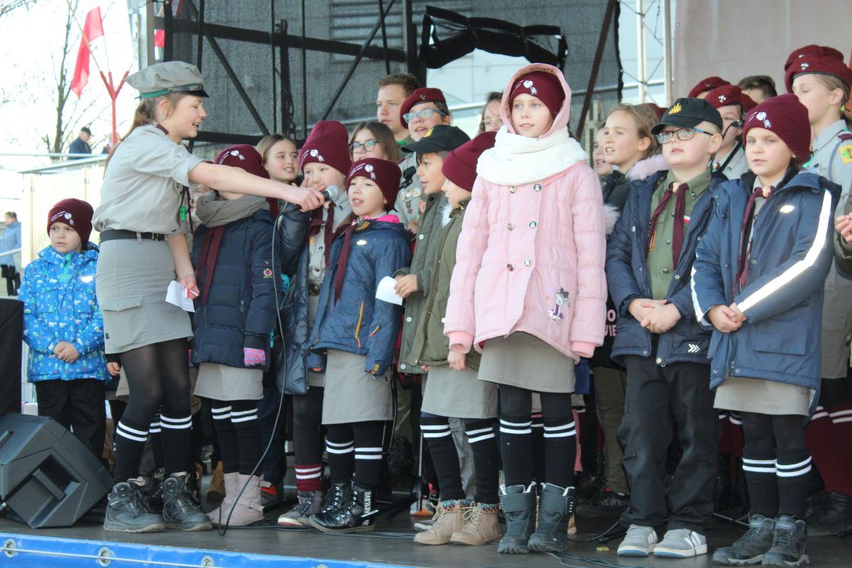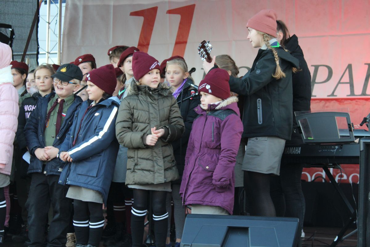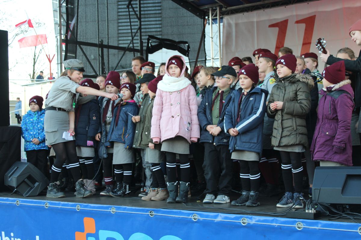 Tuż przed schodami prowadzącymi do hali RCS rozłożono niewielką scenę, na której swoje zdolności artystyczne, a zwłaszcza wokalne, prezentowały różne grupy. Publiczność oklaskiwała m.in. lubińskich harcerzy czy podopiecznych Domu Dziennego Pobytu „Senior” w Lubinie. Naturalnie w repertuarze dominowały utwory o charakterze patriotycznym, wszak to właśnie dziś obchodzimy 101. rocznicę odzyskania przez Polskę niepodległości. Muzycznie był to jednak dopiero przedsmak tego, co od godz. 16.30 działo się już w samej hali, a o czym przeczytacie w naszym następnym artykule.