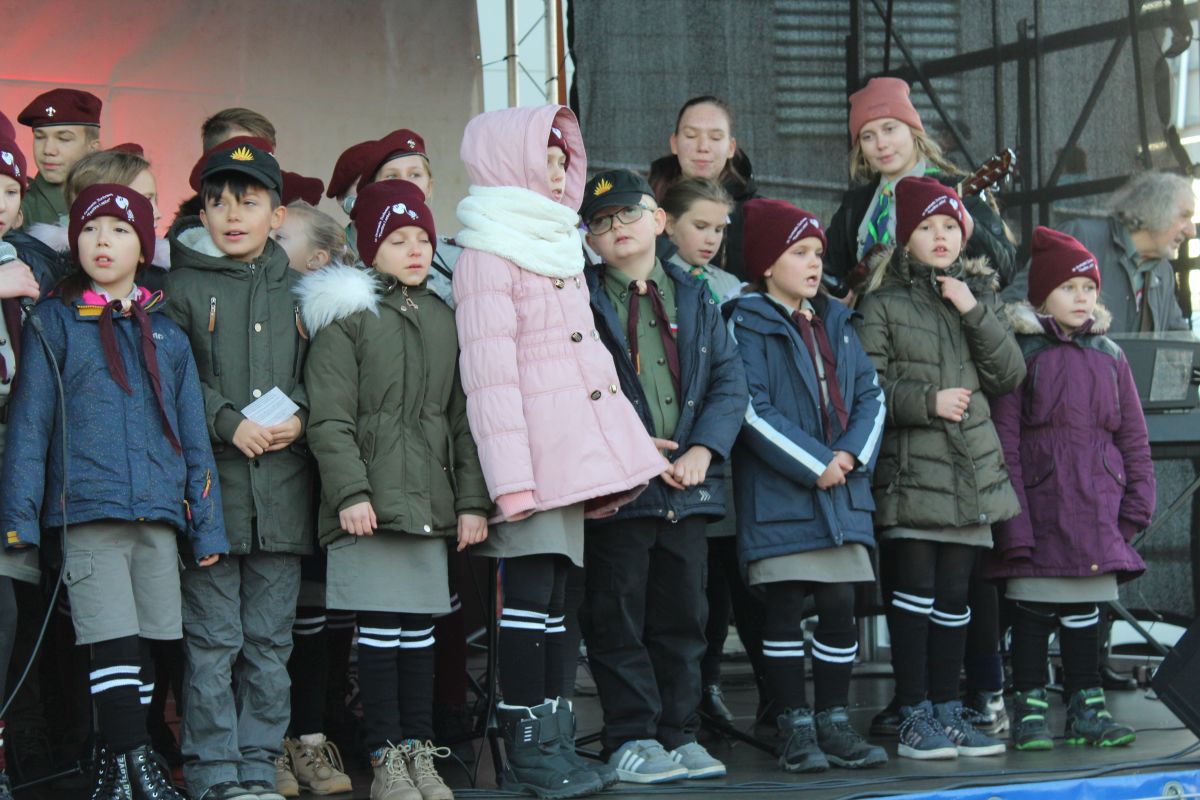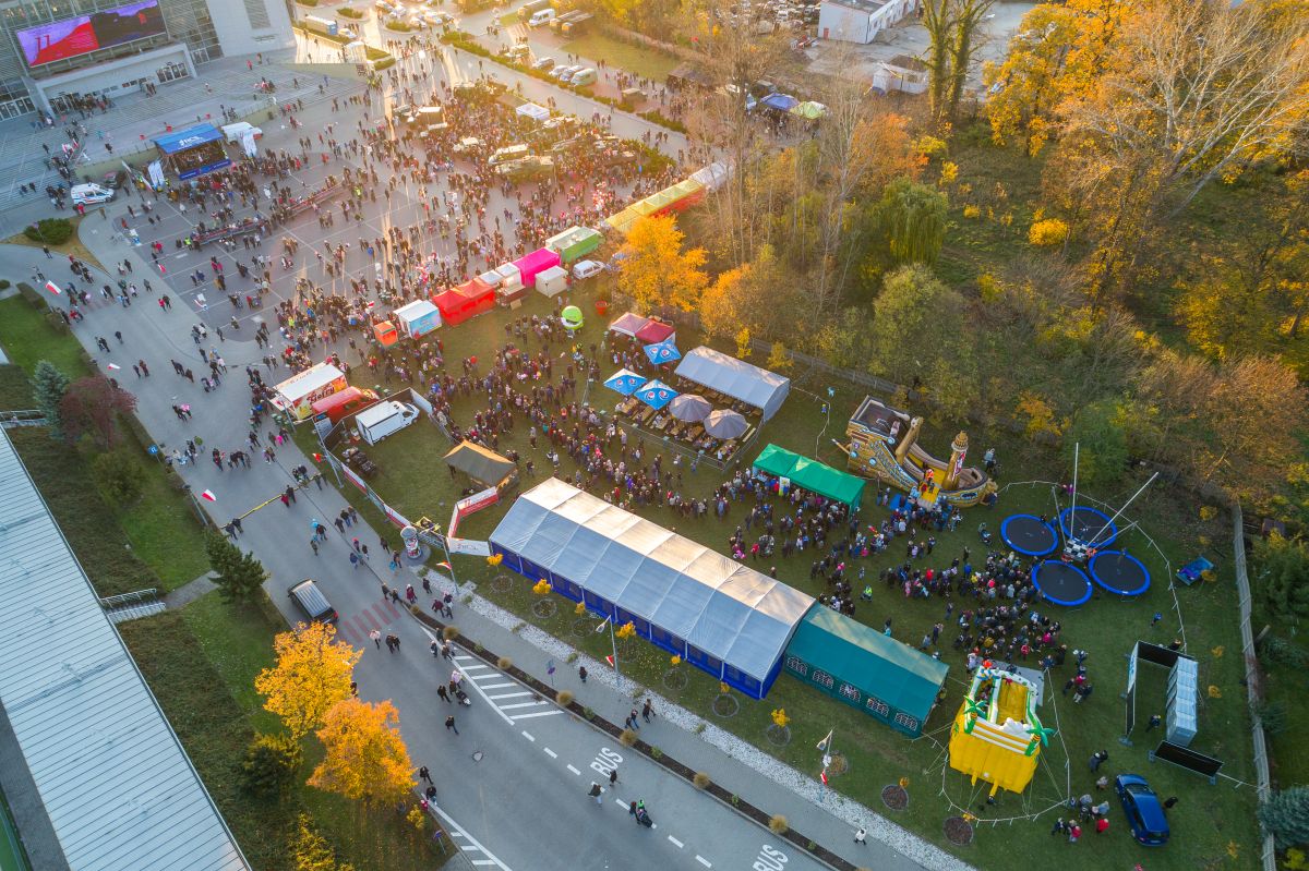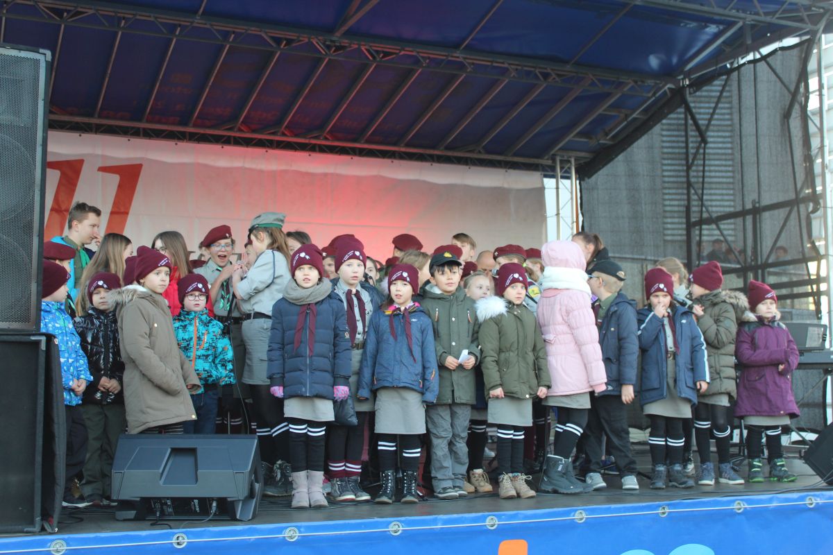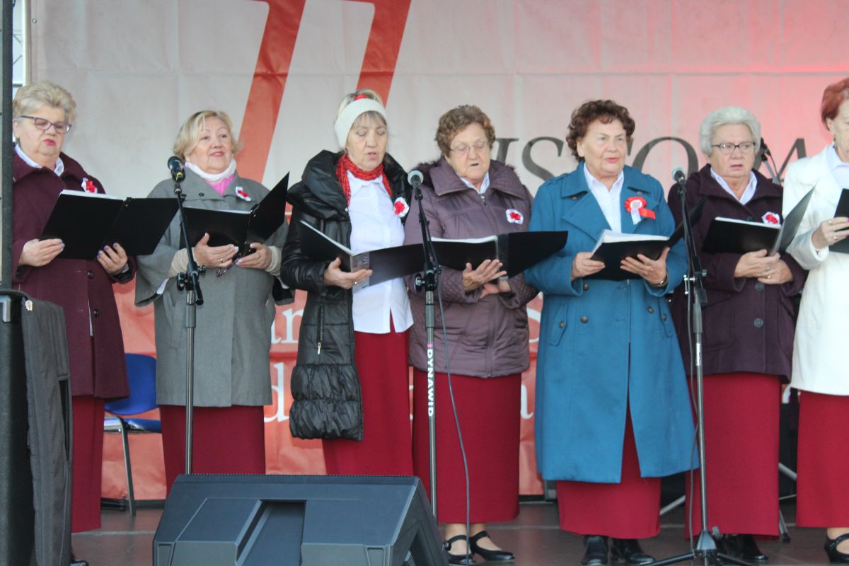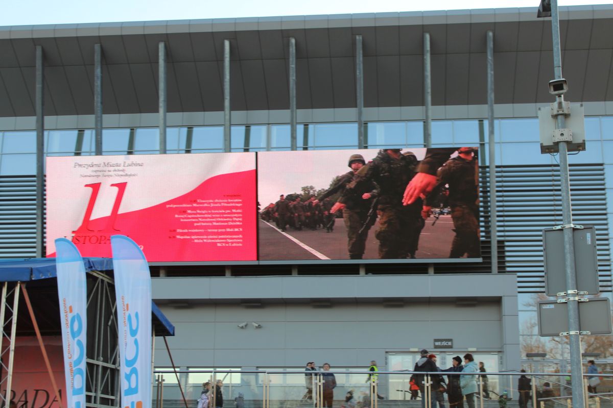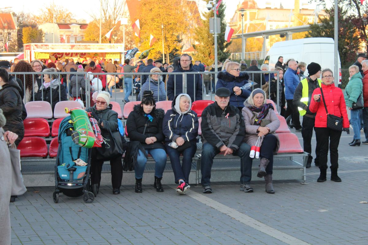 Tuż przed schodami prowadzącymi do hali RCS rozłożono niewielką scenę, na której swoje zdolności artystyczne, a zwłaszcza wokalne, prezentowały różne grupy. Publiczność oklaskiwała m.in. lubińskich harcerzy czy podopiecznych Domu Dziennego Pobytu „Senior” w Lubinie. Naturalnie w repertuarze dominowały utwory o charakterze patriotycznym, wszak to właśnie dziś obchodzimy 101. rocznicę odzyskania przez Polskę niepodległości. Muzycznie był to jednak dopiero przedsmak tego, co od godz. 16.30 działo się już w samej hali, a o czym przeczytacie w naszym następnym artykule.
