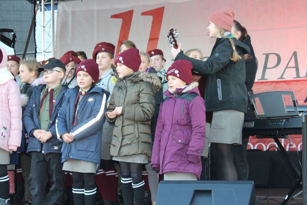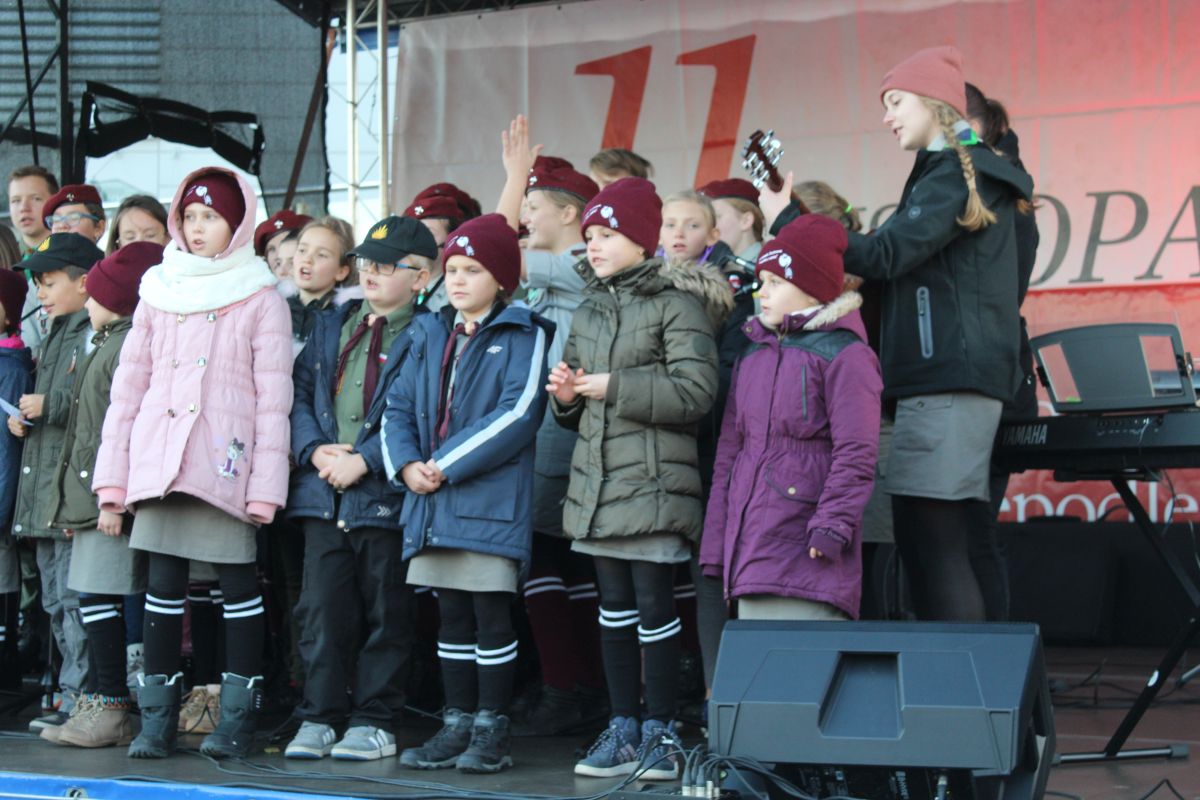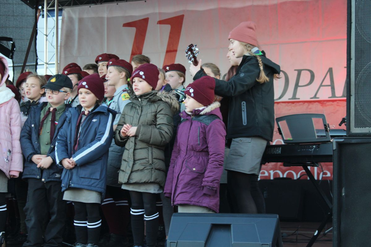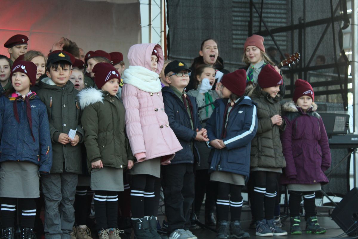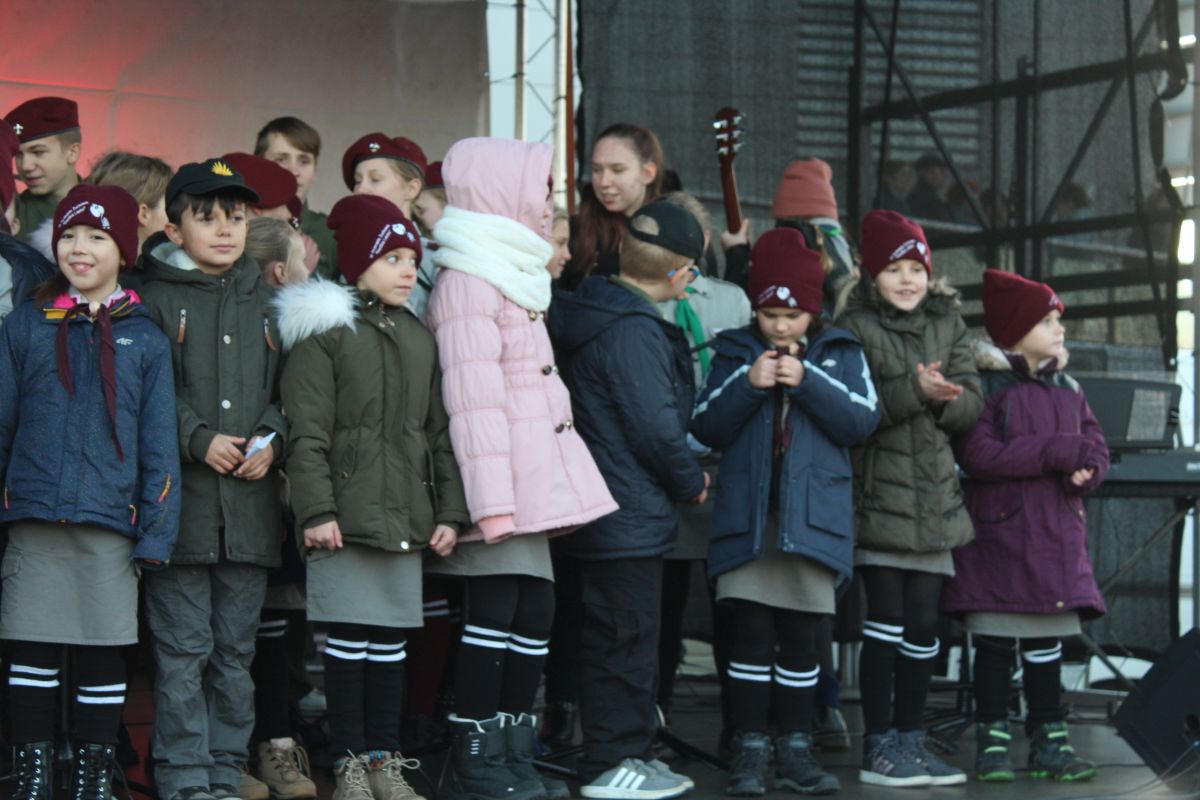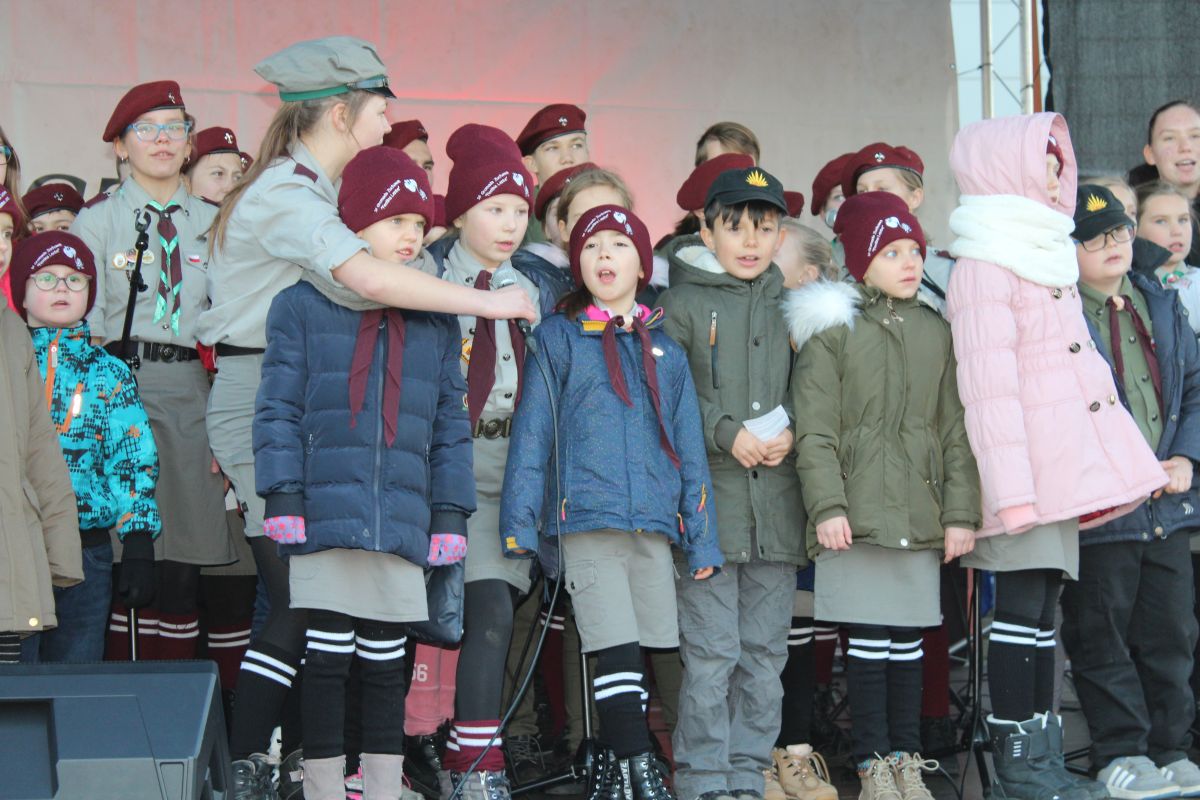 Tuż przed schodami prowadzącymi do hali RCS rozłożono niewielką scenę, na której swoje zdolności artystyczne, a zwłaszcza wokalne, prezentowały różne grupy. Publiczność oklaskiwała m.in. lubińskich harcerzy czy podopiecznych Domu Dziennego Pobytu „Senior” w Lubinie. Naturalnie w repertuarze dominowały utwory o charakterze patriotycznym, wszak to właśnie dziś obchodzimy 101. rocznicę odzyskania przez Polskę niepodległości. Muzycznie był to jednak dopiero przedsmak tego, co od godz. 16.30 działo się już w samej hali, a o czym przeczytacie w naszym następnym artykule.
