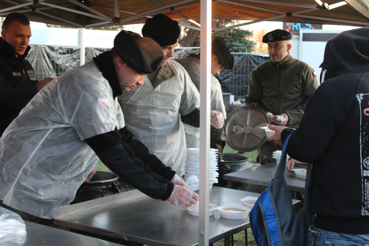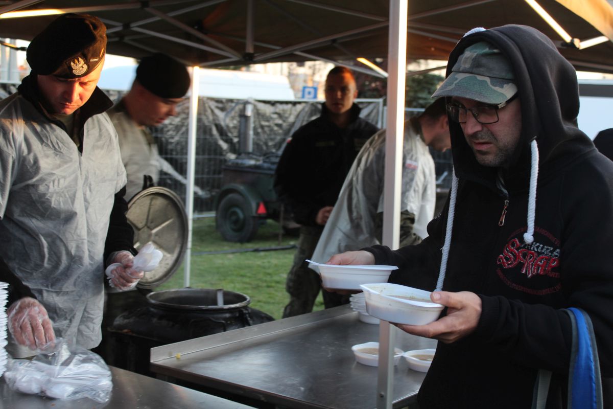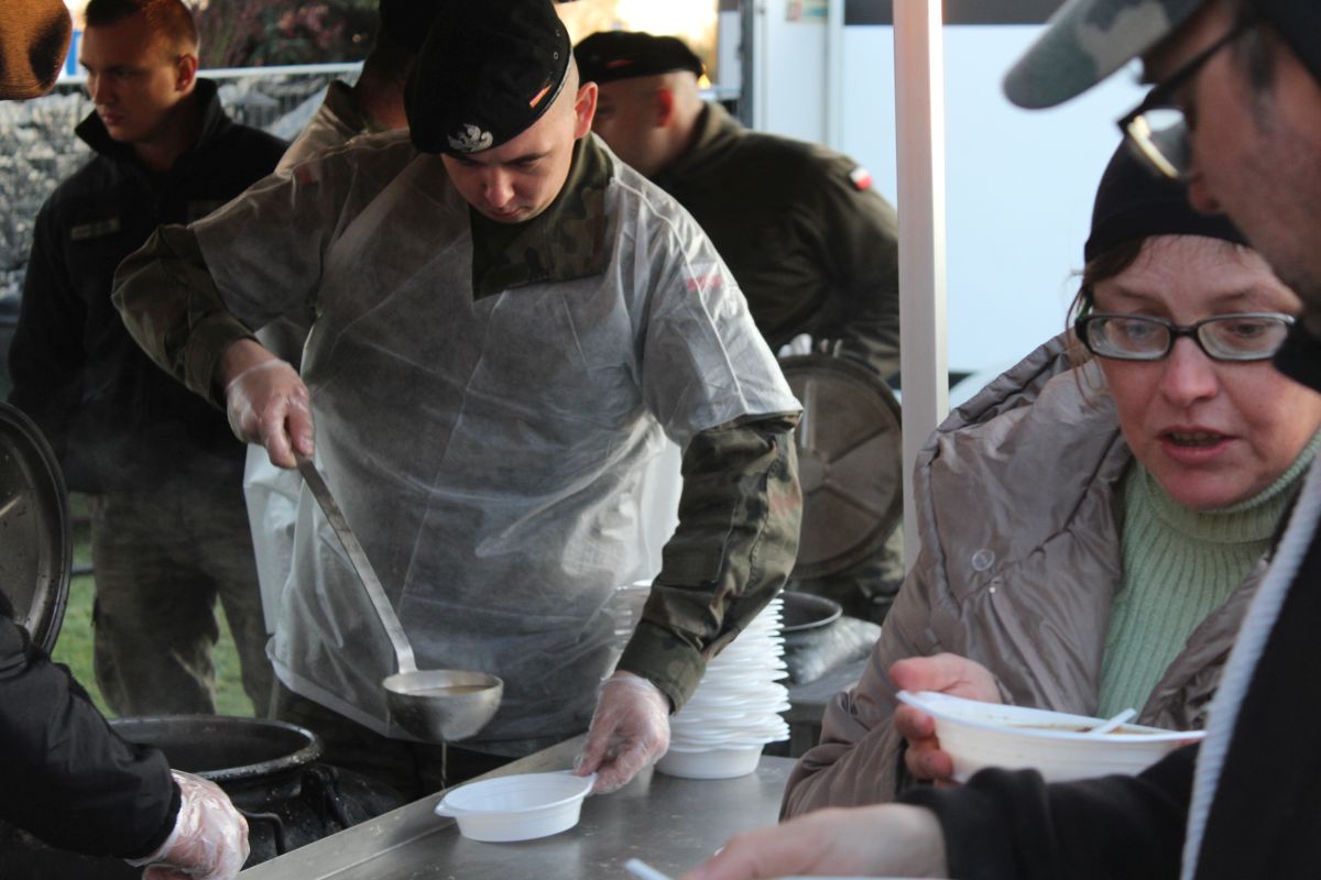 Wielu odwiedzających miało ochotę na darmową porcję treściwej, żołnierskiej grochówki, której zapach kusił każdego. Nie każdemu jednak chciało się stać w ogromnej kolejce, jaka utworzyła się przy kotłach z gorącą zupą. Tym bardziej, że wokół tyle atrakcji, że szkoda z jakiekolwiek rezygnować. Ten, kto bardziej cierpliwy, na pewno nie żałował. – To jest prawdziwa grochówa. Pyszna. Taka sama, jaką pamiętam z dzieciństwa, a później z wojska – delektował się pan Mieczysław ze Ścinawy.