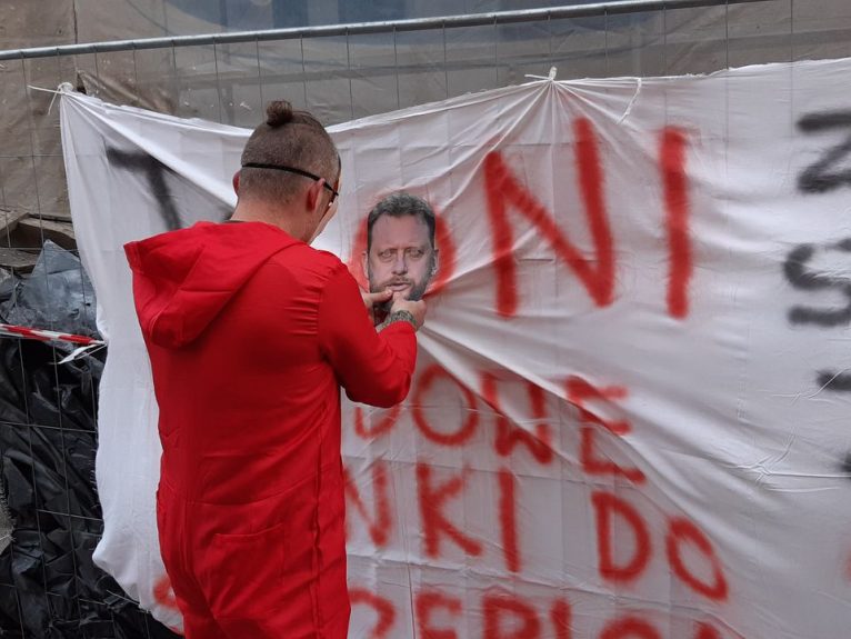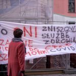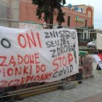 – Moim zdaniem ze względu na pogodę jest nas trochę mało, ale dużo ludzi choćby przypadkowo będzie tędy przechodzić i przez chwilę posłucha muzyki lub przeczyta nasze banery. To oni są za zniszczenia w służbie zdrowia. Nie będę wymieniał ich nazwisk, ale chyba każdy zna tych pacjentów, którzy powinni być leczeni, ale w zakładzie zamkniętym. Na szczęście jeden się już wyleczył i go nie ma w rządzie. Czekamy jeszcze na dwóch pozostałych – mówi Krzysztof Komornicki ze STOP COVID Lubin, współorganizator dzisiejszego koncertu.
