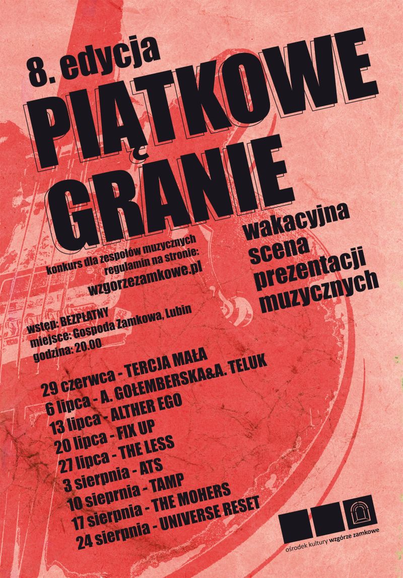 Organizatorem konkursu dla zespołów muzycznych Piątkowe Granie – Wakacyjna Scena Prezentacji Muzycznych jest Ośrodek Kultury Wzgórze Zamkowe w Lubinie.