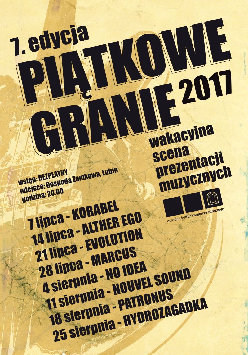 Tak jak w ubiegłych latach, koncerty odbywać się będą w każdy piątek lipca i sierpnia o godzinie 20 na scenie plenerowej usytuowanej przy Wzgórzu Zamkowym, w bezpośrednim sąsiedztwie tarasu restauracji Gospoda Zamkowa w Lubinie.