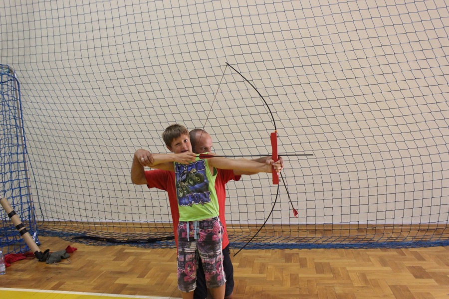 Oprócz wspinania się po ścianie można było postrzelać z łuku i z broni pneumatycznej. To wszystko czekało na dzieci przed południem na hali sportowej przy SP 14.