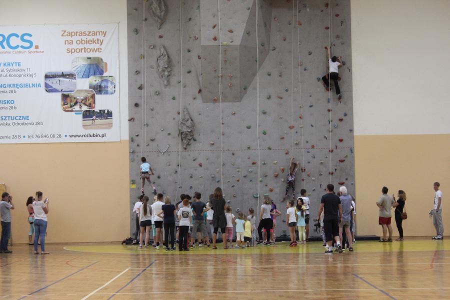 Ściana wspinaczkowa w hali SP 14 w Lubinie do wspinaczki po raz kolejny wzbudziła spore zainteresowanie wśród najmłodszych mieszkańców Lubina i okolic. Zabawa odbyła się w ramach Akcji Lato 2016, organizowanej przez Regionalne Centrum Sportowe w Lubinie.