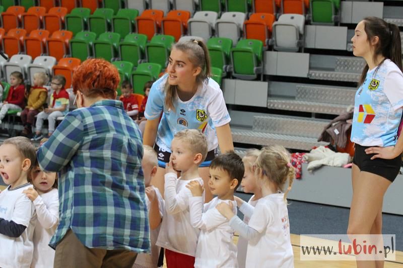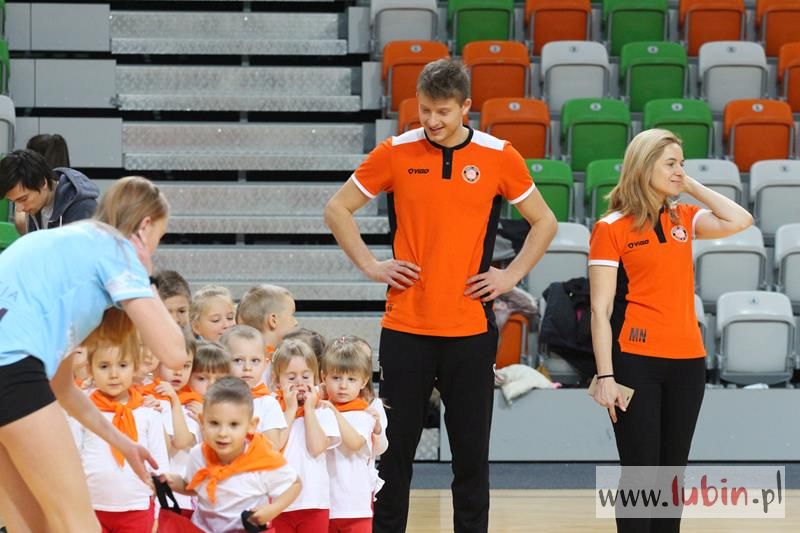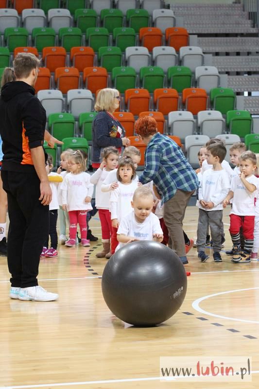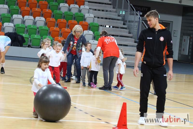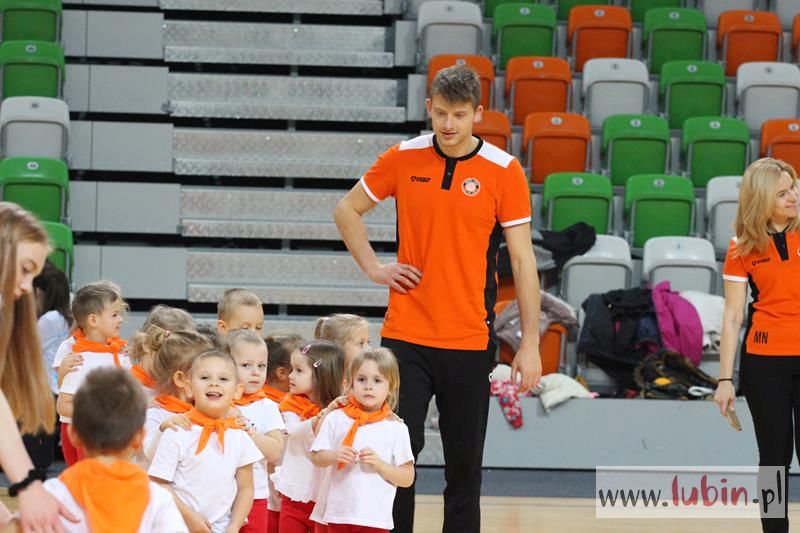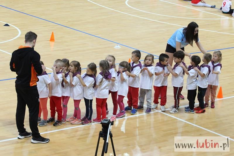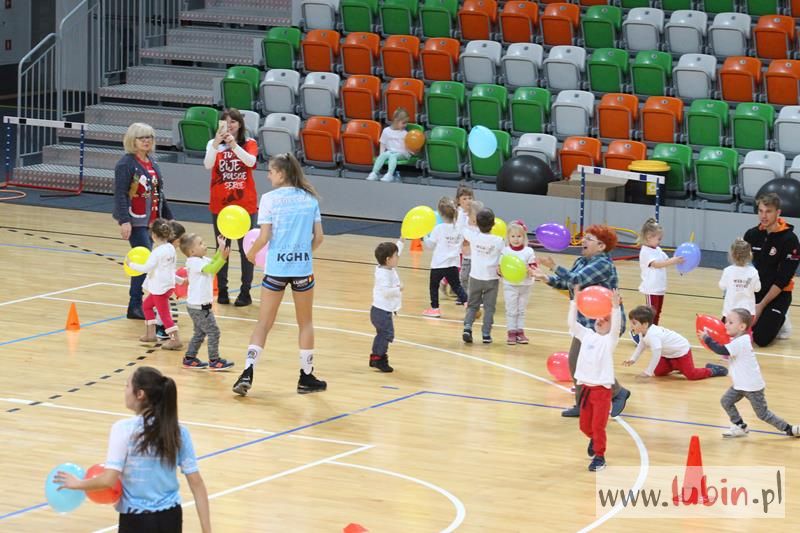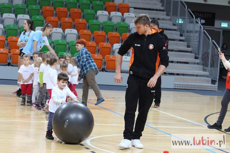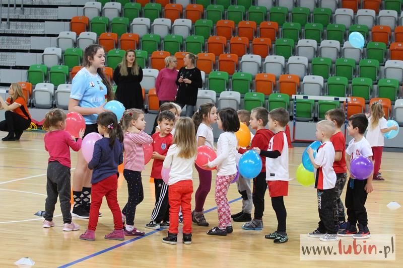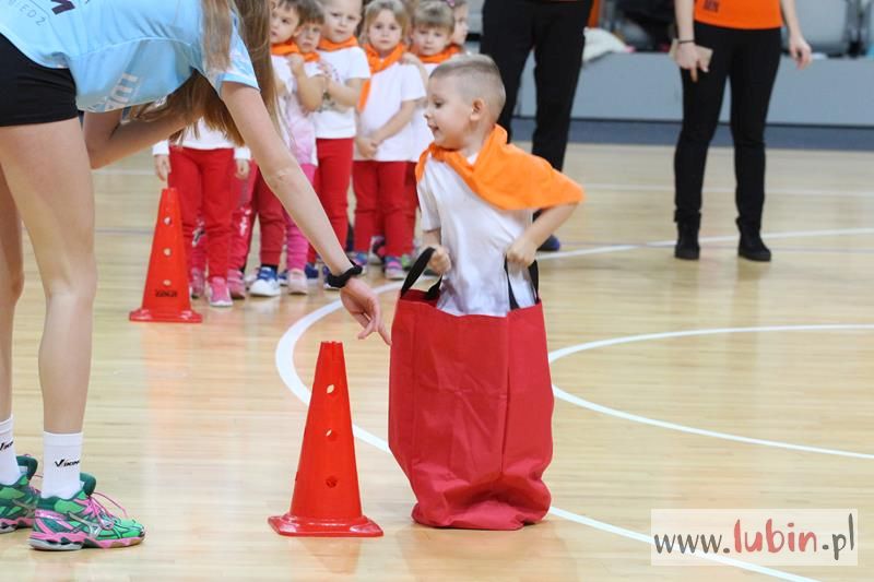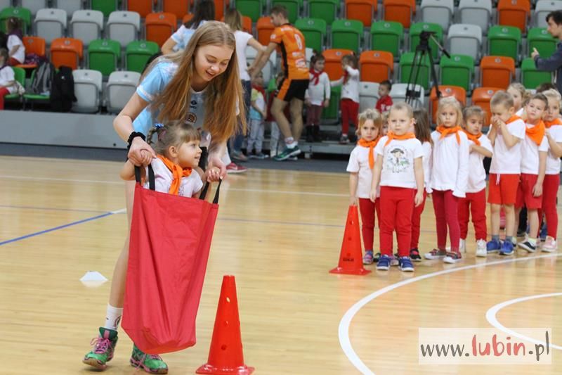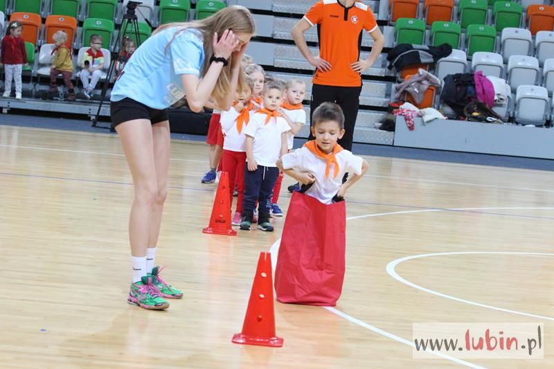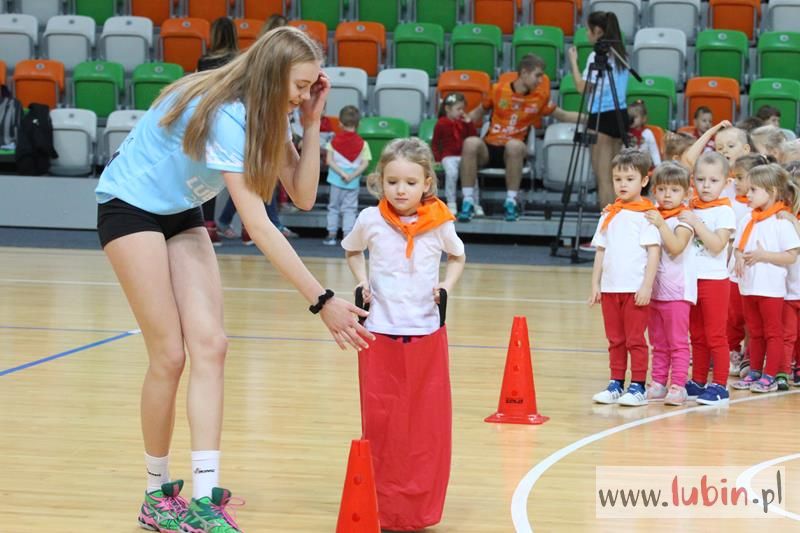 Dzieci miały profesjonalną rozgrzewkę, brały udział w torach przeszkód oraz bawiły się z balonami. – Obserwując dzieci myślę, że dzieci są bardzo wysportowane i są w swoim żywiole. Uważam, że od jak najmłodszych lat powinno się zaszczepiać dzieciom sport – mówi Wioletta Sopala-Ziółkowska, nauczyciel Przedszkola Miejskiego nr 1 w Lubinie. – Wiele dzieci chodzi z rodzicami na mecze siatkówki i piłki ręcznej, więc mają świadomość wielu sportów. Dzieci bardzo cieszyły się, że mogły przyjechać na halę. Przebywając z kimś, kto na co dzień trenuje zawodowo to dla dzieci jest dużym plusem – dodaje Izabella Polak-Salamon, nauczyciel PM nr 1.