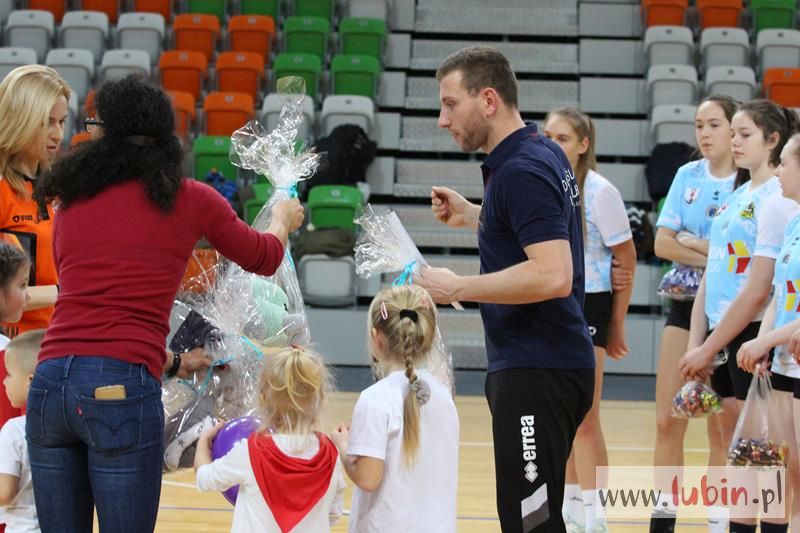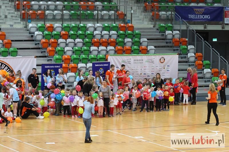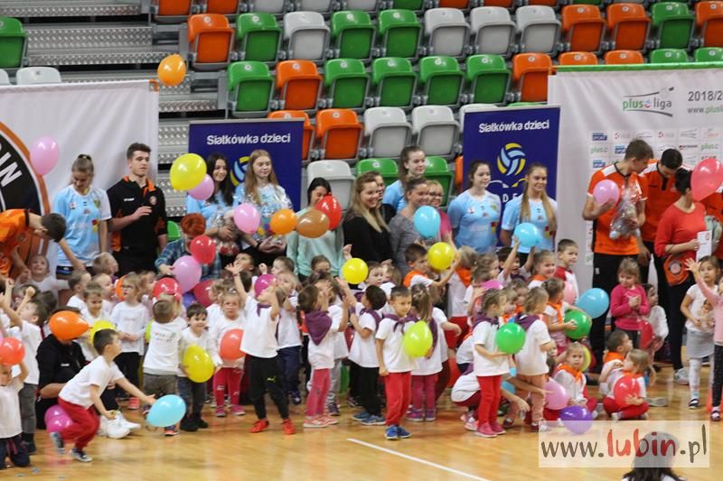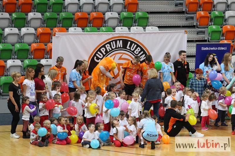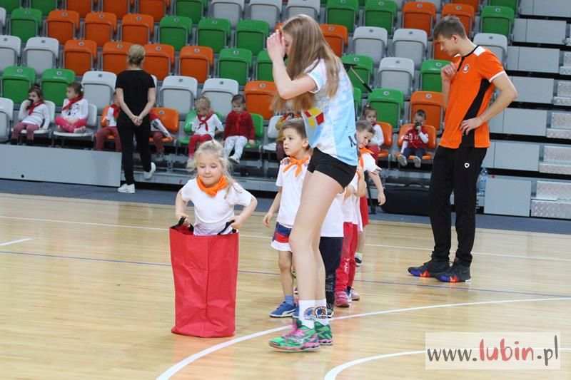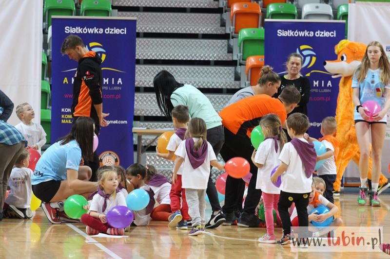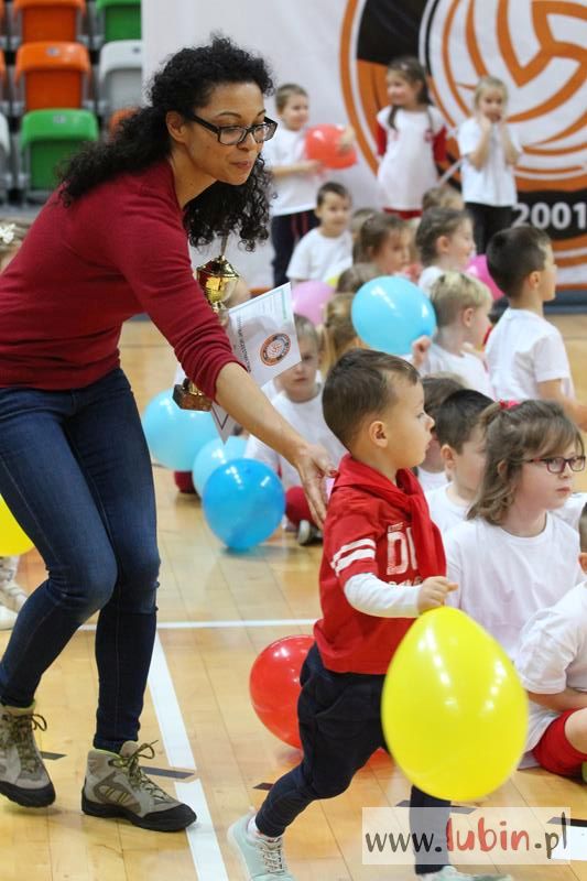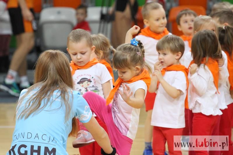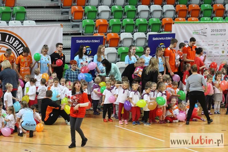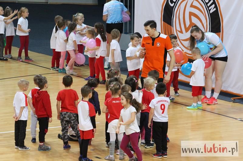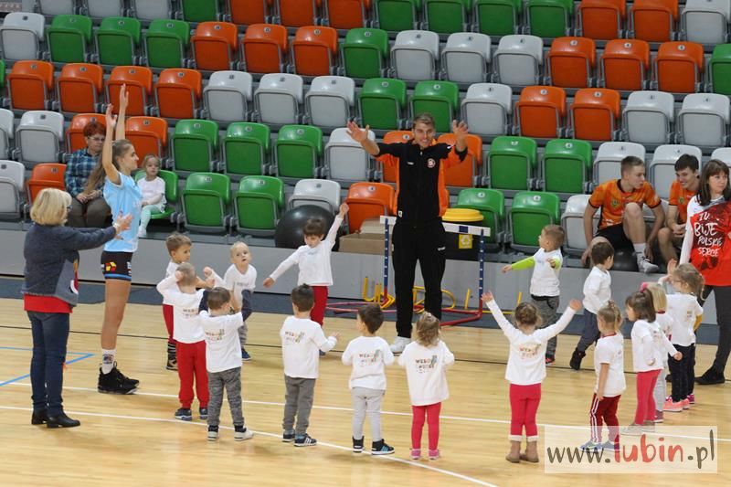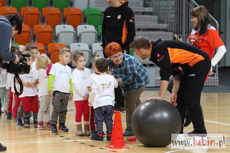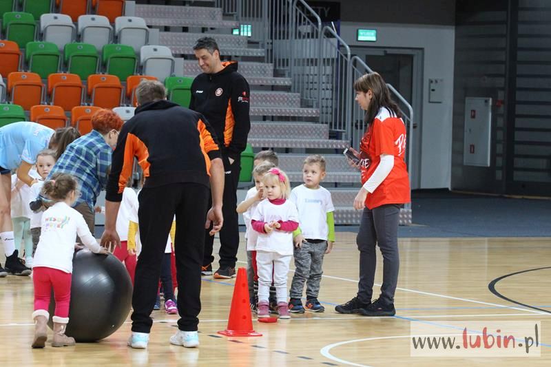 Dzieci miały profesjonalną rozgrzewkę, brały udział w torach przeszkód oraz bawiły się z balonami. – Obserwując dzieci myślę, że dzieci są bardzo wysportowane i są w swoim żywiole. Uważam, że od jak najmłodszych lat powinno się zaszczepiać dzieciom sport – mówi Wioletta Sopala-Ziółkowska, nauczyciel Przedszkola Miejskiego nr 1 w Lubinie. – Wiele dzieci chodzi z rodzicami na mecze siatkówki i piłki ręcznej, więc mają świadomość wielu sportów. Dzieci bardzo cieszyły się, że mogły przyjechać na halę. Przebywając z kimś, kto na co dzień trenuje zawodowo to dla dzieci jest dużym plusem – dodaje Izabella Polak-Salamon, nauczyciel PM nr 1.