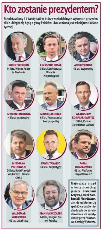 O najwyższy urząd w naszym kraju ubiega się obecny prezydent i jego dziesięciu rywali. Epidemia i zamieszanie wokół terminu i formuły wyborów sprawiły, że kampania wyborcza miała inny przebieg. Mniej było wizyt i spotkań z obywatelami, a dużo więcej promocji w mediach społecznościowych. Do Lubina przyjechał jedynie Robert Biedroń i Krzysztof Bosak, Ścinawę odwiedził zaś Szymon Hołownia