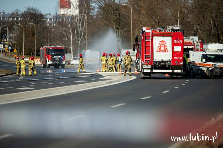 – Tuż po godzinie 13 otrzymaliśmy zgłoszenie o intensywnym wycieku gazu, który powstał w wyniku przeprowadzanych prac ziemnych przez podmiot wykonujący tzw. przecisk podziemny. Nasze działania polegały na zabezpieczeniu miejsca zdarzenia – mówi aspirant Patryk Zdanowski, oficer prasowy komendanta powiatowego Państwowej Straży Pożarnej w Lubinie.