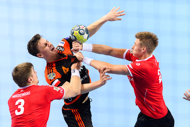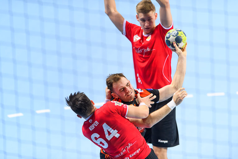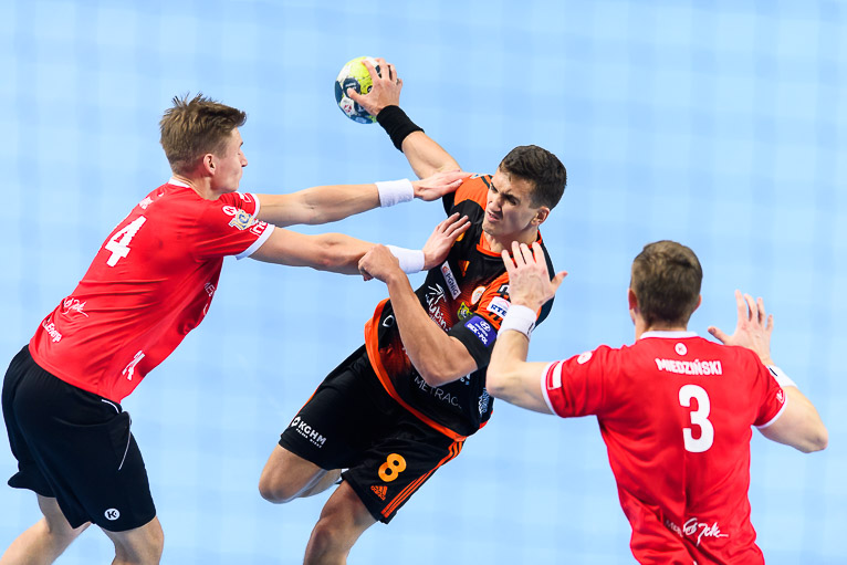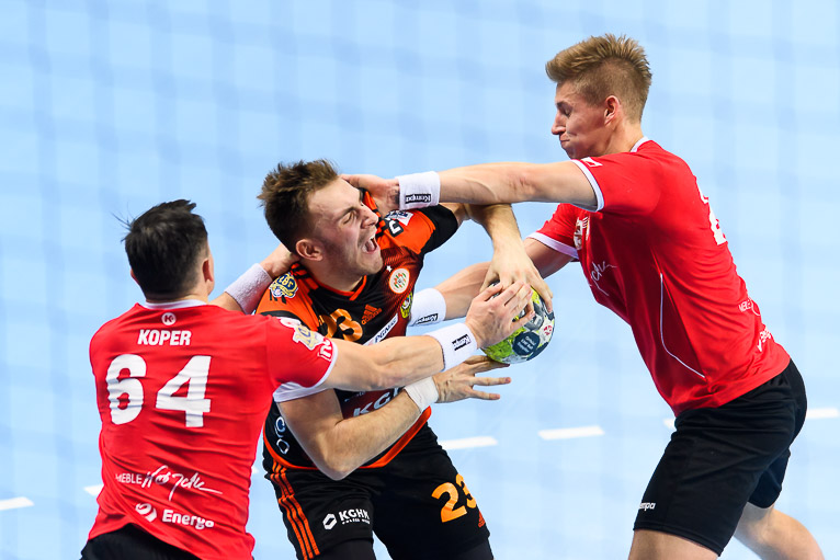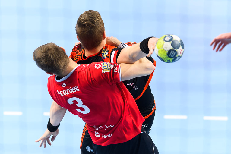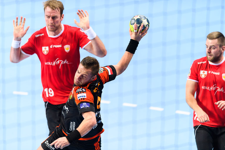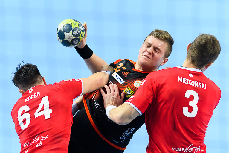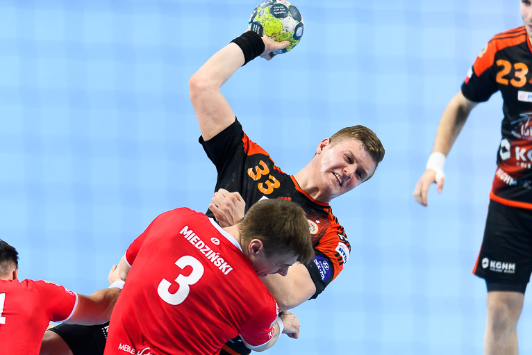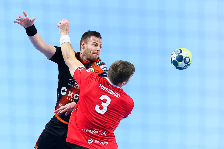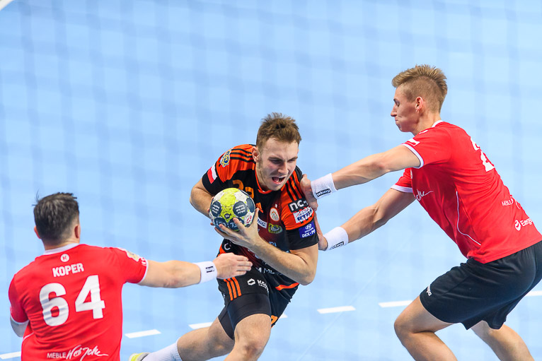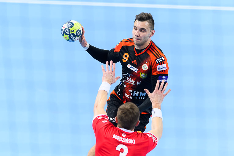 Choć w drugiej połowie pierwszą bramkę zdobył Piotr Adamczak, to początek należał do miedziowych, a właściwie do jednego zawodnika. Krystian Bondzior zdobył bardzo ważne bramki, w tym tą na 17:16, co oznaczało pierwsze prowadzenie dla gospodarzy. Później było jeszcze lepiej. Kolejne trafienia z koła Dawida Dawydzika dała dały miedziowym 4-bramkową przewagę. Kwadrans przed końcem o czas poprosił trener gości Jacek Będzikowski. Meble traciły do Zagłębia już pięć bramek. W drugiej połowie lubinianie włączyli piąty bieg i każda kolejna udana akcja dodawała im skrzydeł, w bramce kolejne piłki odbijał Jakub Skrzyniarz, a miedziowi wykorzystywali kolejne okazje. W końcówce elblążanie jeszcze złapali oddech i dwie minuty przed końcem było już tylko 29:28. Bardzo ważną bramkę z karnego rzucił dwie minuty przed końcem Arkadiusz Moryto. Chwilę później karę dwóch minut zarobił Tomasz Pietruszko i do końca miedziowi musieli radzić sobie w osłabieniu. Pomimo tego lubinianie nie pozwolili sobie wydarzeń zwycięstwa.