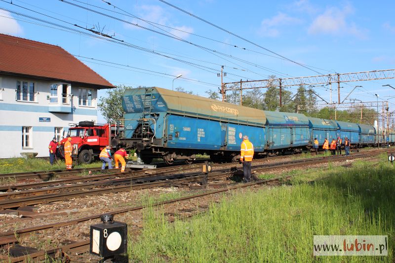 To pracownicy kolei powiadomili policję o wypadku, około godziny 5 rano. – Jak wstępnie ustalili policjanci, którzy pracują na miejscu tego zdarzenia, około godziny 3.22 maszynista dostał zgodę na wyruszenie w podróż pociągiem z zestawem towarowym. Kilkaset metrów dalej doszło do wykolejenia się pociągu – informuje aspirant sztabowy Jan Pociecha, oficer prasowy lubińskiej policji. – Maszyna oraz trzy wagony jadące za nią wypadły z torów – dodaje.