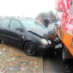 W tym samym czasie przy ul. Jana Pawła doszło do kolejnej wypadku. Kierująca samochodem marki Volksvagen Polo jechała od strony ul. Bolesławieckiej w stronę ul Chocianowskiej. Przy Chocianowskiej stał samochód dostawczy. Kobieta prawdopodobnie wpadła w poślizg i uderzyła w stojące auto.