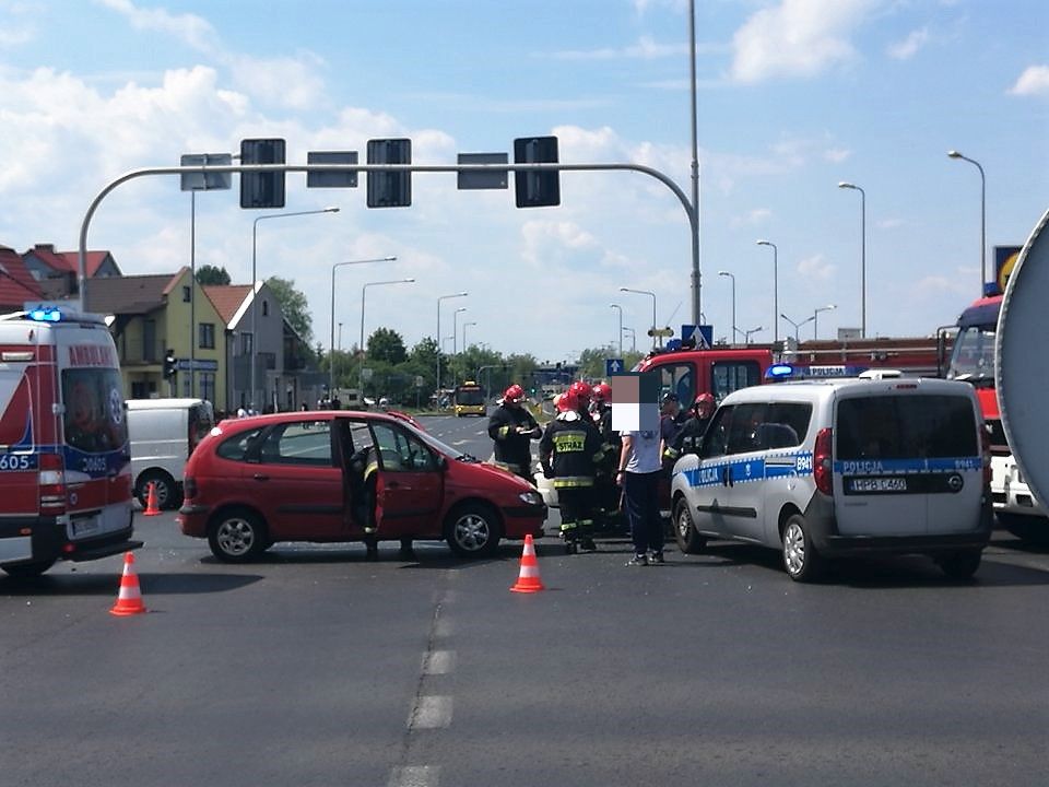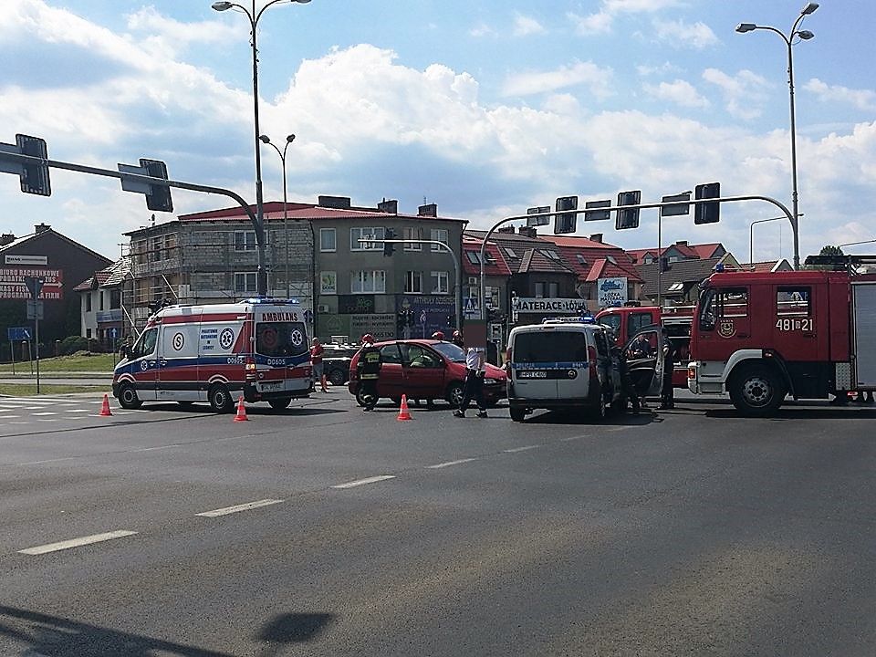 W wypadku uczestniczyły dwa samochody osobowe oraz motocykl. Jak wstępnie ustalili pracujący na miejscu policjanci z wydziału ruchu drogowego, kobieta kierująca renault megane jechała ulicą Jana Pawła II od strony Obory w kierunku centrum. Natomiast motocyklista jechał ulicą Hutniczą od strony stadionu w kierunku obwodnicy.
