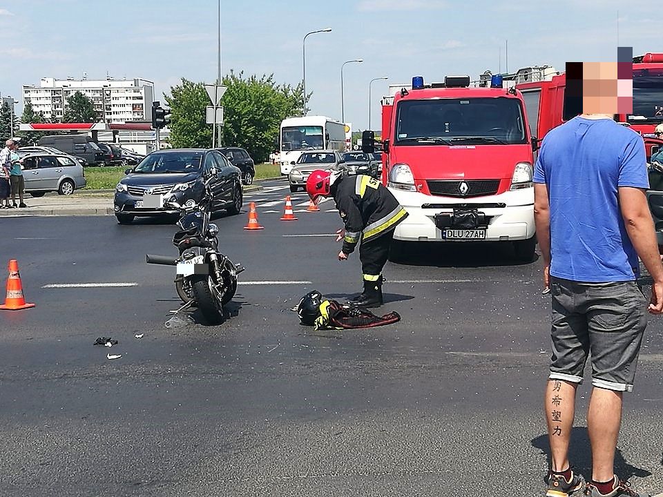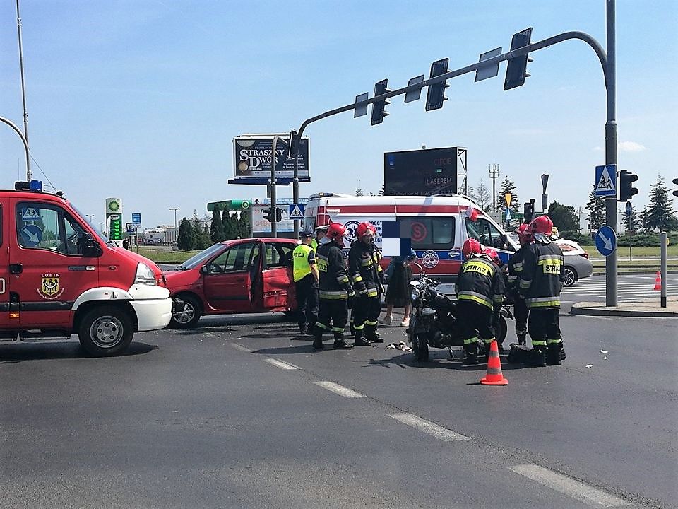– Doszło do zderzenia tych pojazdów, dodatkowo motocyklista uderzył jeszcze w skodę. Mężczyzna został przewieziony do lubińskiego szpitala, pozostali uczestnicy wypadku nie odnieśli obrażeń – informuje aspirant sztabowy Jan Pociecha, oficer prasowy lubińskiej komendy.