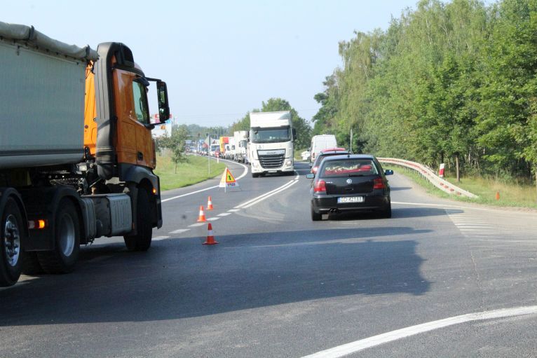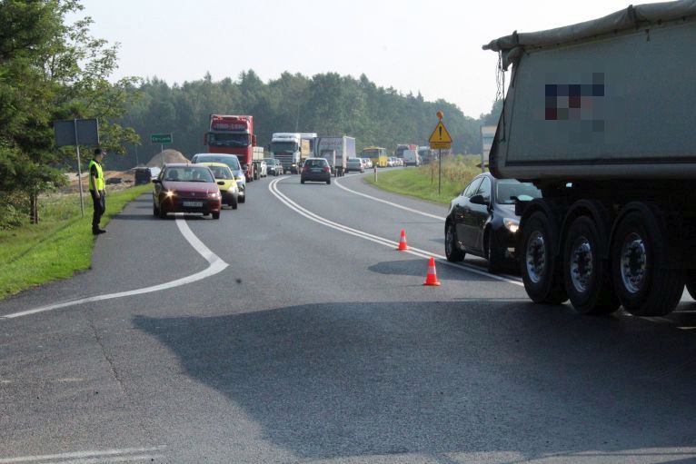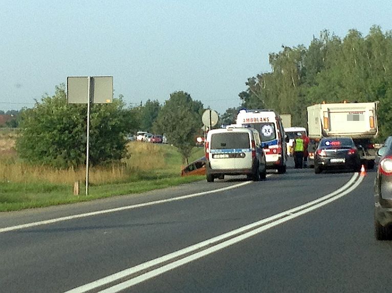 Na miejscu wypadku pracuje policja. Ruch prowadzony jest wahadłowo.