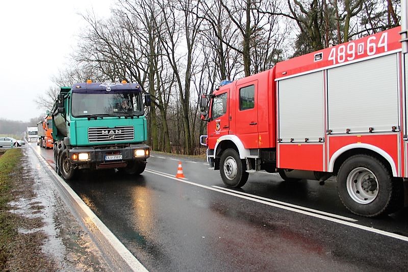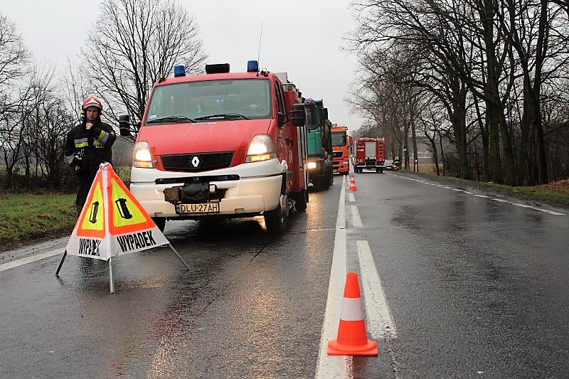 Do wypadku doszło około godziny 14. – Kierujący samochodem ciężarowym, jadący od Wrocławia w kierunku Lubina, zderzył się z samochodem marki Ford, jadącym z przeciwległego kierunku. Z nieustalonych na razie przyczyn, kierowca forda zjechał na przeciwległy pas ruchu. Z relacji świadków wynika, że kierowca ciężarówki próbował uniknąć zderzenia z samochodem osobowym – informuje asp. sztab. Jan Pociecha.