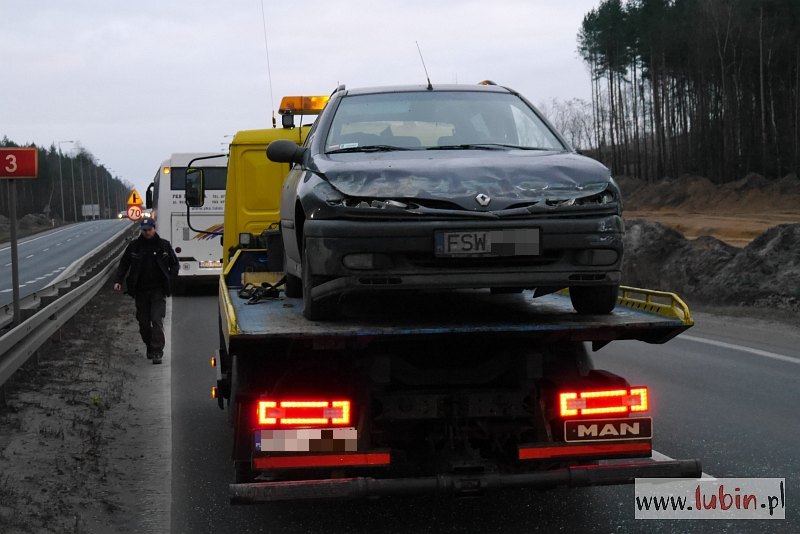 Nieco później na wysokości siedziby Pol-Miedź Transu na krajowej trójce w stronę Lubina doszło do kolizji autobusu i auta marki Renault. A przed Oborą samochód wpadł do rowu.