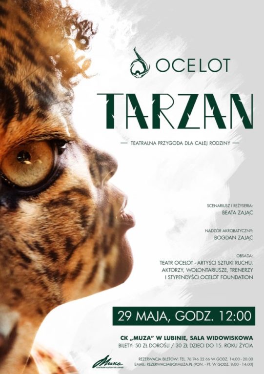 Spektakl Teatru Ocelot to niezwykła opowieść o miłości, odpowiedzialności i szacunku do natury. Tarzan i Jane zabiorą nas w zaskakującą podróż do beztroskiej krainy małp. Przedstawienie w wykonaniu artystów Teatru Ocelot i utalentowanych stypendystów Fundacji jest gwarancją dobrej zabawy i spotkania z akrobatyką na najwyższym poziomie.