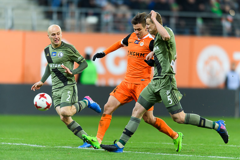Zagłębie Lubin: Polaček – Čotra, Guldan, Madera, Todorovski – Kubicki, Łukasz Piątek (85. Jagiełło), Janoszka (85. Vlasko), Starzyński, Woźniak – Nešpor.