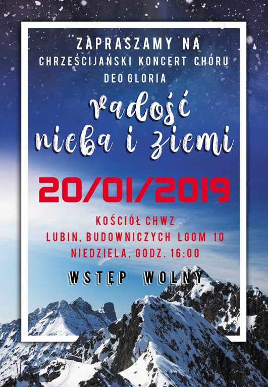 Występ zatytułowany „Radość nieba i ziemi” zaplanowano na godzinę 16 w kościele Chrześcijańskiej Wspólnoty Zielonoświątkowej, który mieści się przy ulicy ul. Budowniczych LGOM 10 w Lubinie.