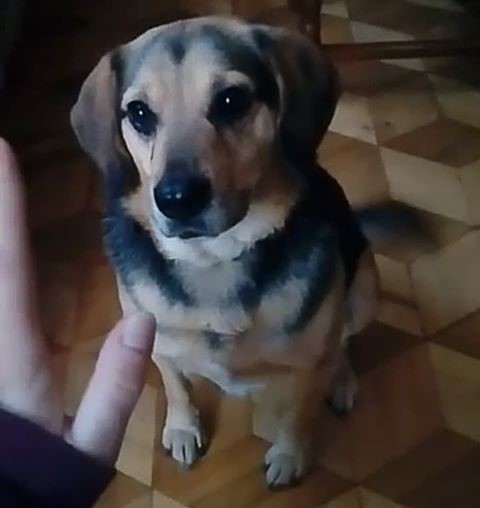 Psiak to mieszanka beagle’a i kundelka. Jest niewielki, ma dłuższe uszy i ciemną sierść, jedynie na pysku i brzuchu jaśniejszą – brązową. Miał na sobie czarną obrożę.